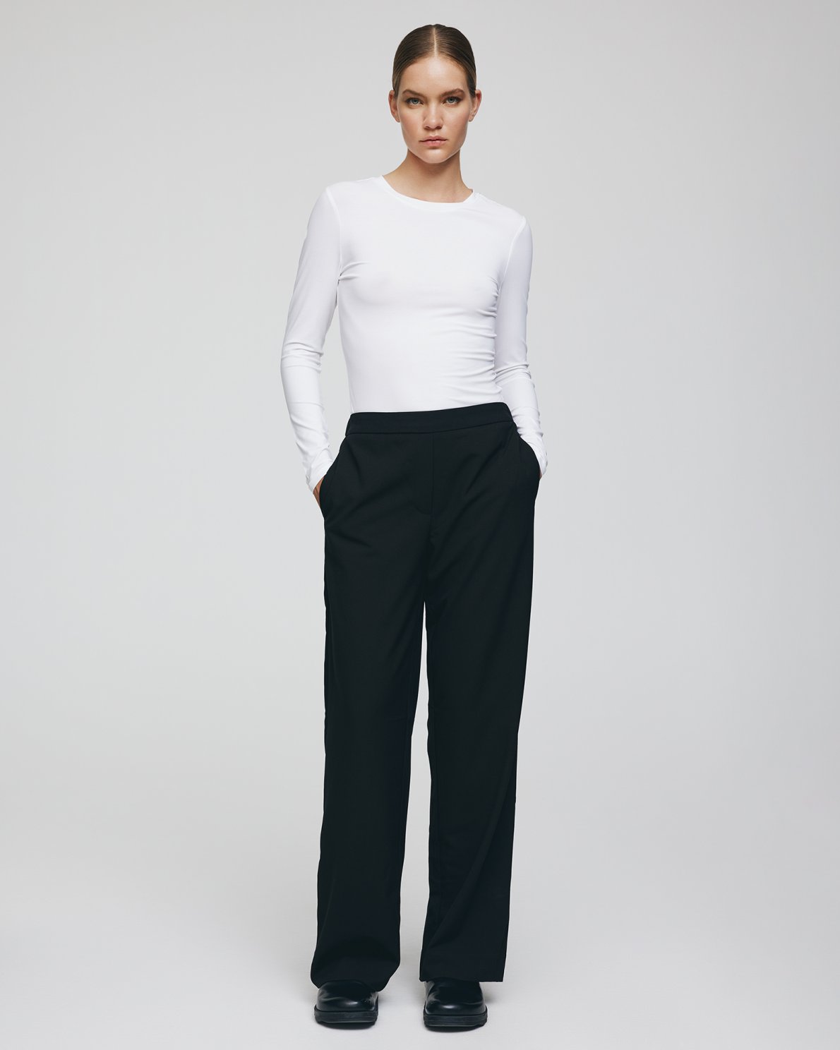Tailored pants in a straight fit. The elastic waist will make you feel like wearing a second skin. Side pockets will make a casual look. Style it with a cute blouse, a basic tee or a feminine shirt.