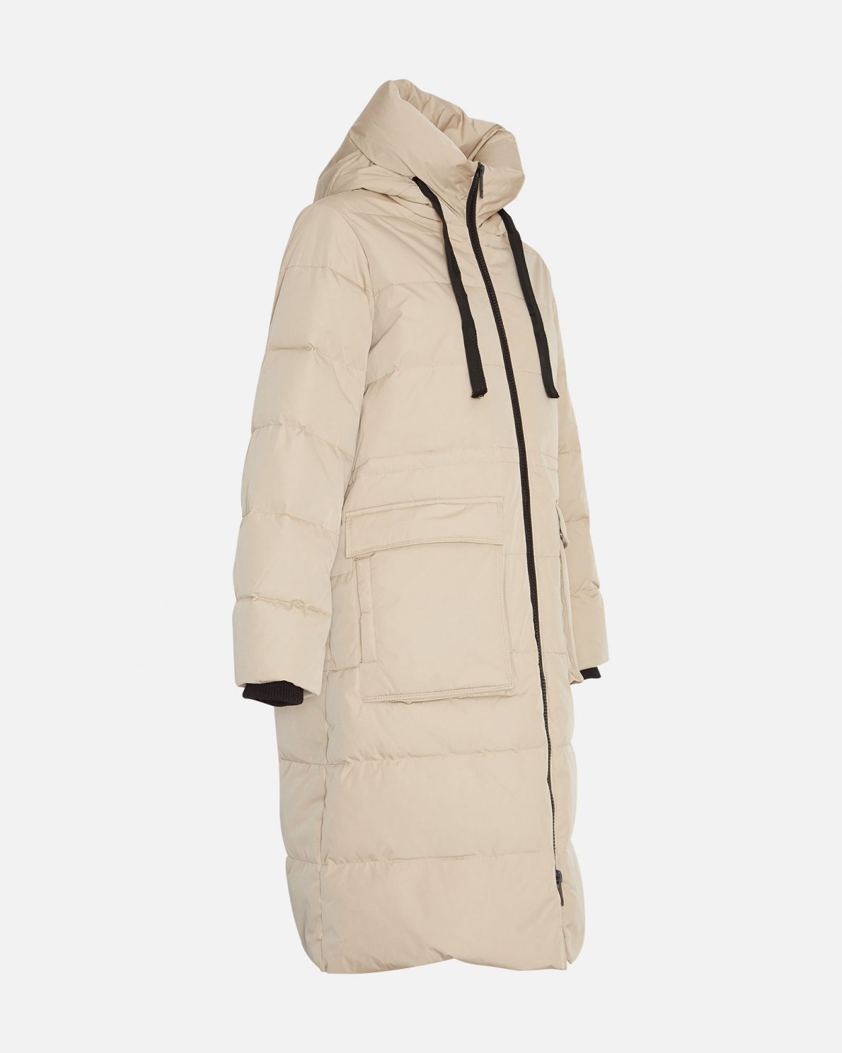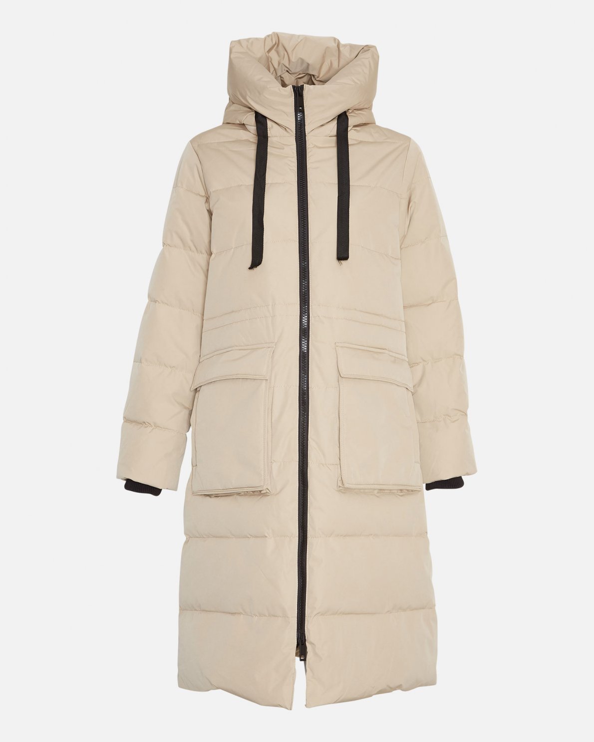 Below the knee puff jacket with hood with drawstrings