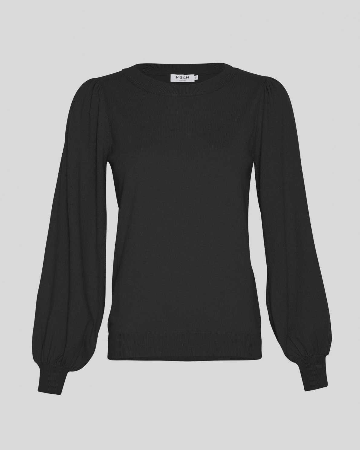 Leichter Pullover mit Stehkragen, gestrickt aus einem weichen Stoff, ausgestattet mit gerippten Bündchen und Saum.