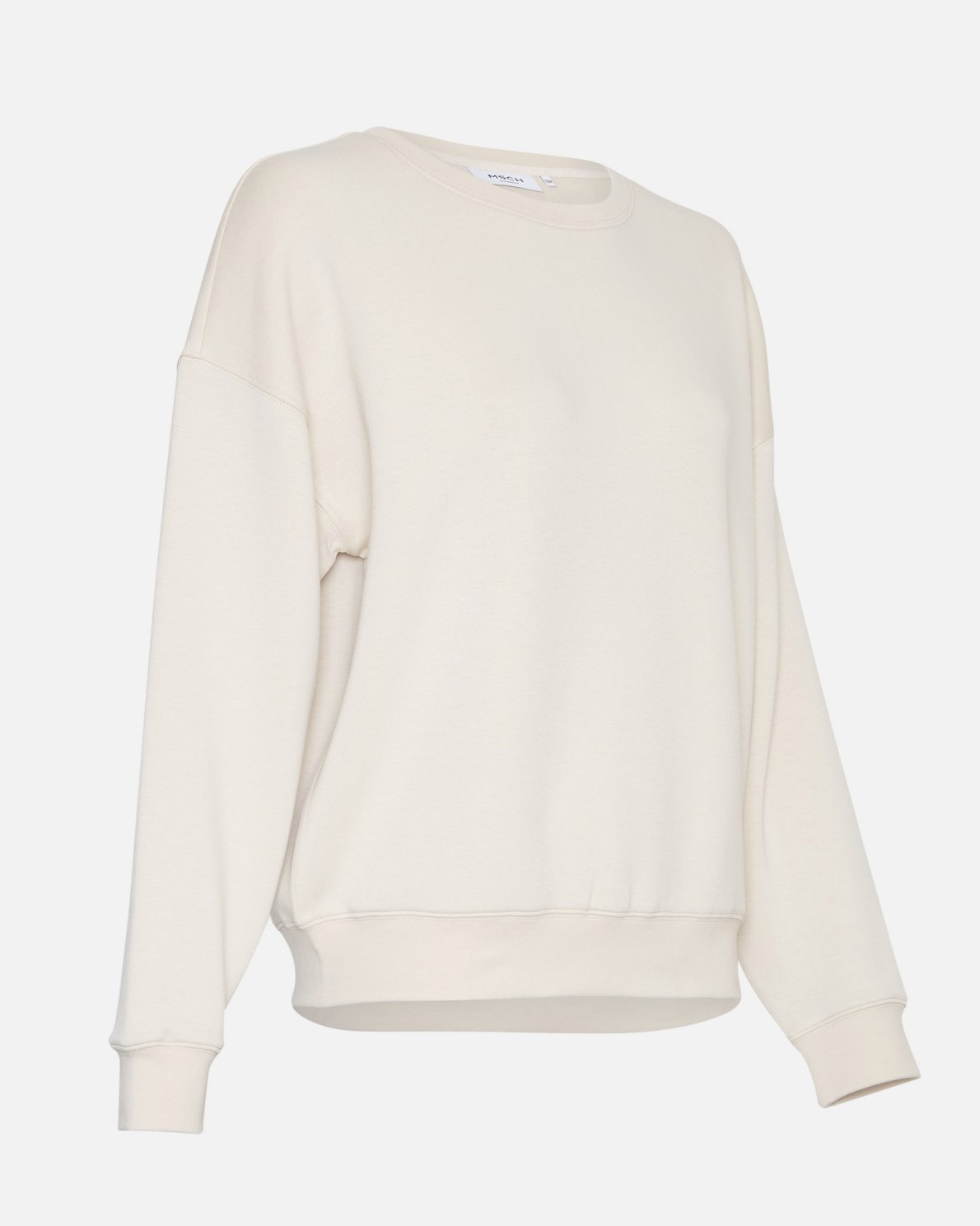 Slip into softness. This MSCH must-have is a basic shweatshirt which is a true foundation of every wardrobe. Ima features drop shoulders, loose fittes sleeves and a mock neck. It might be basic, but it brings joy to every outfit. Find your facourite colour and pair with matching sweatpants or a pair of pleated pants to create some contrast.