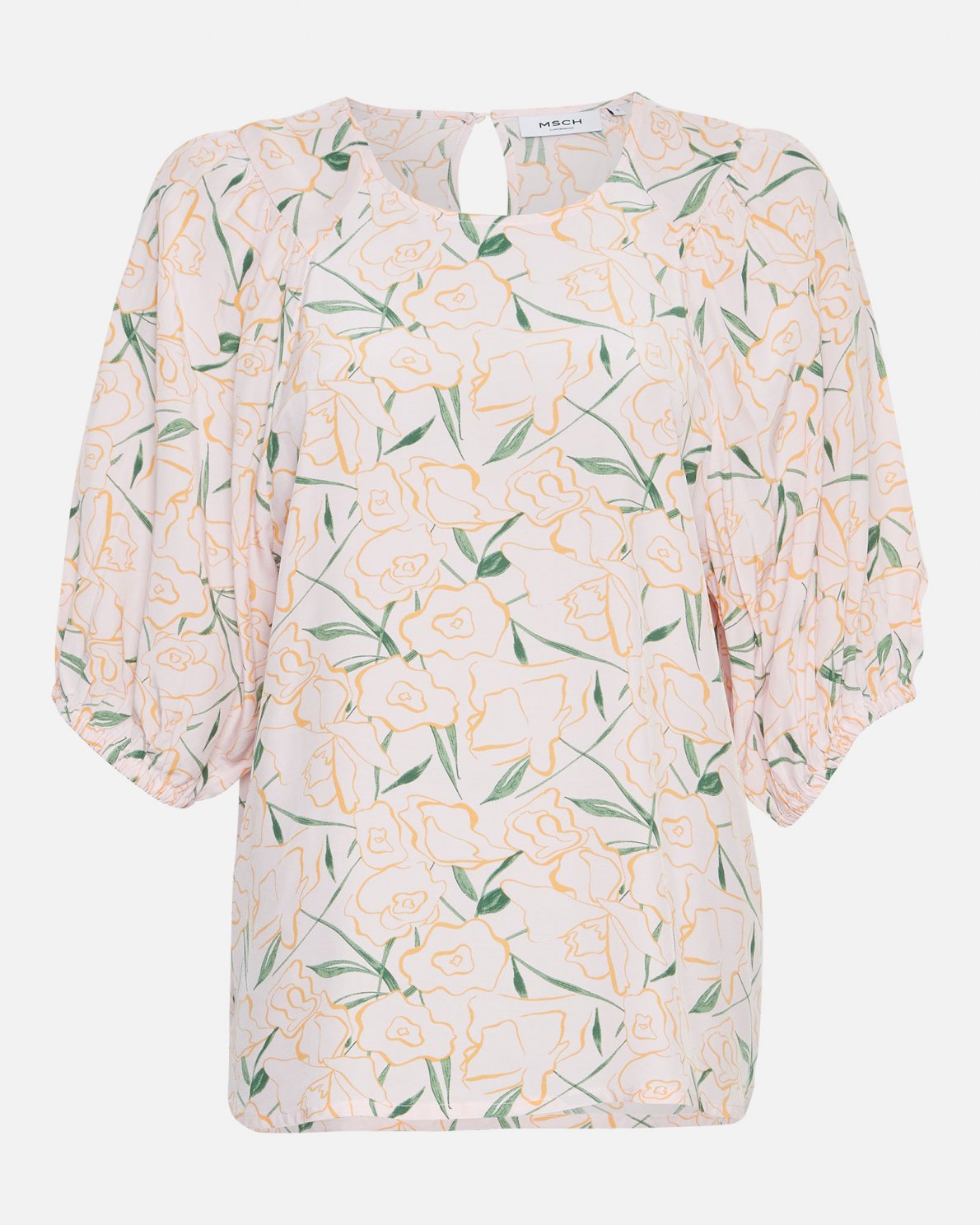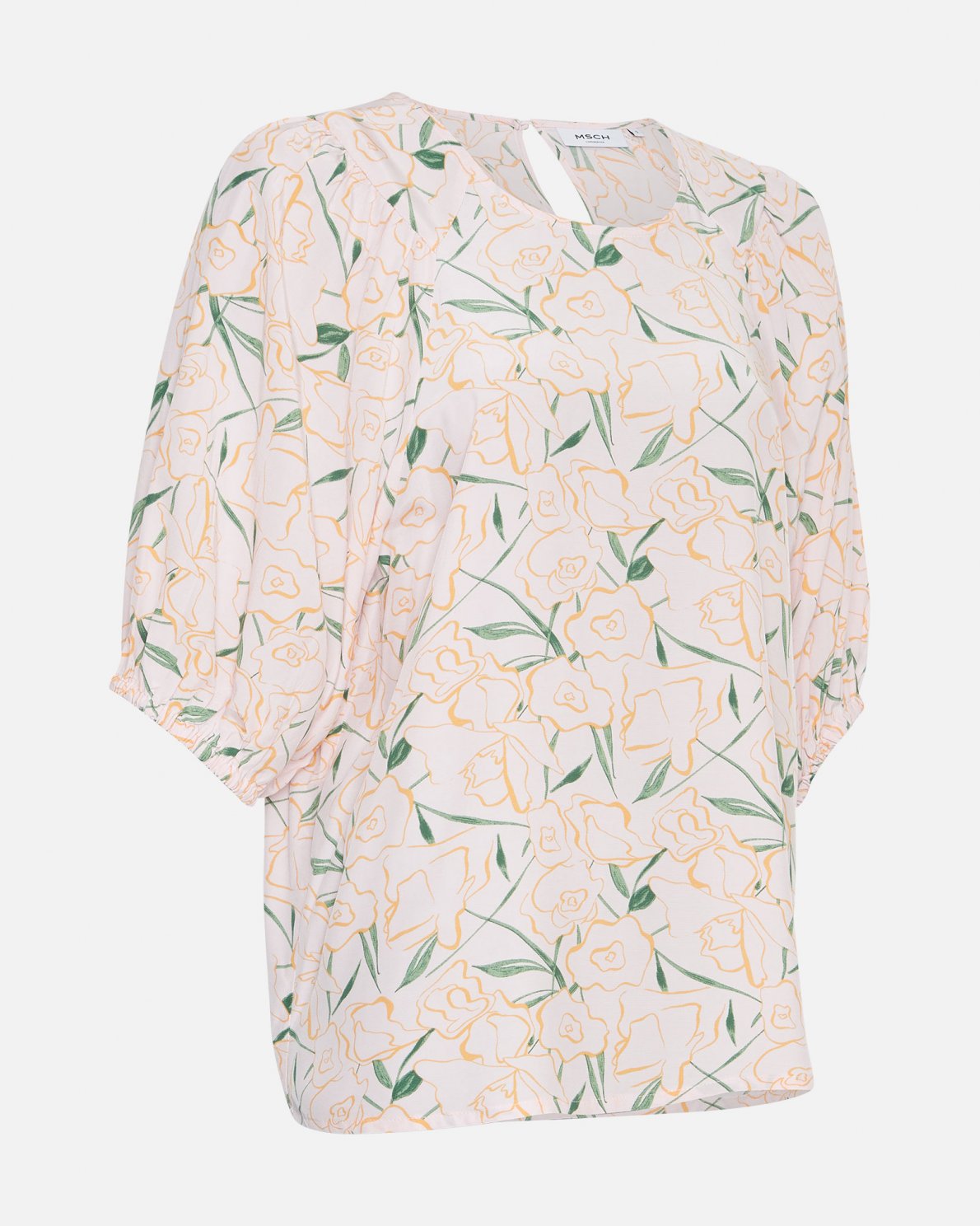 Our Tenya top features 2/4 sleeves with an O-neck and flower print.