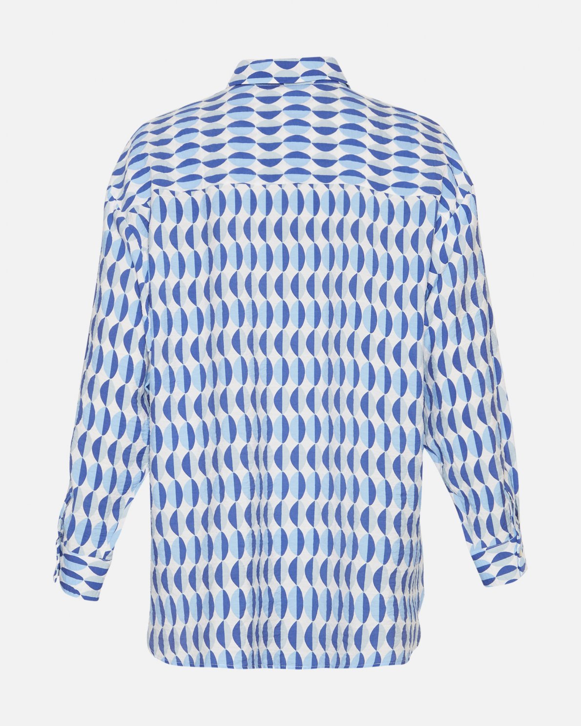 The shir has a half placket detail, covered in a beautifully blue print and a botton closure.