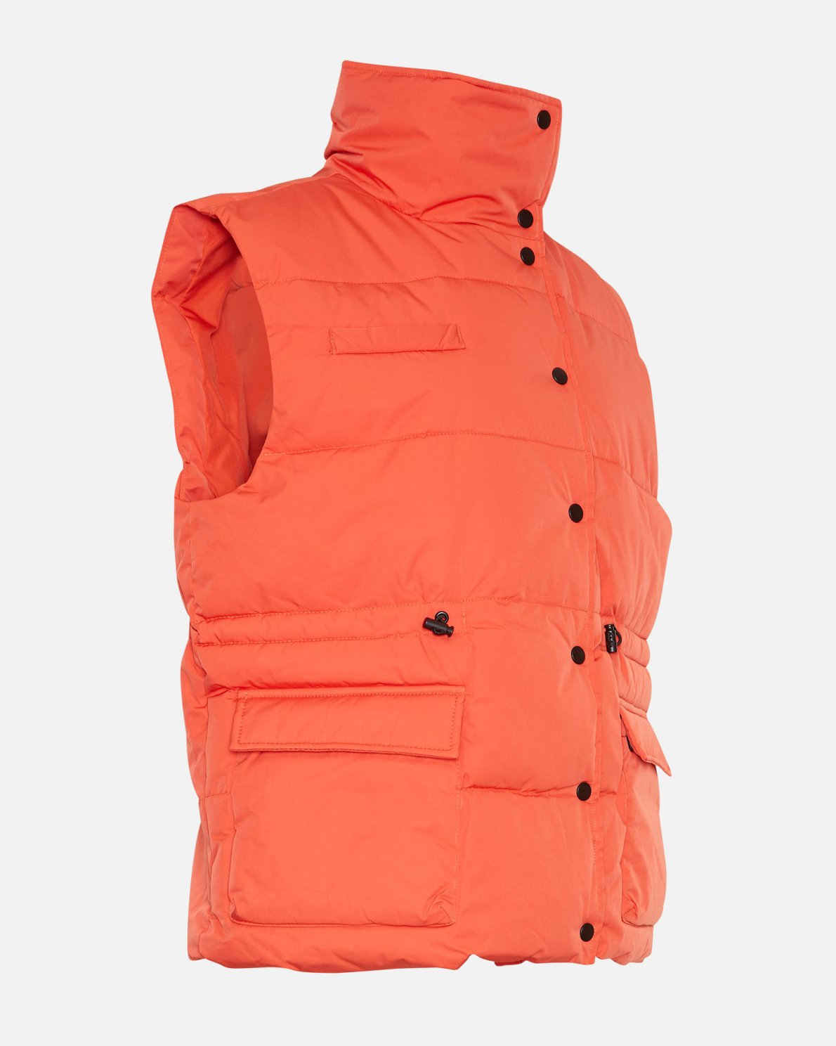 This waistcoat is created in a water repellent material, with button closure, pockets on the side and with a high neck.