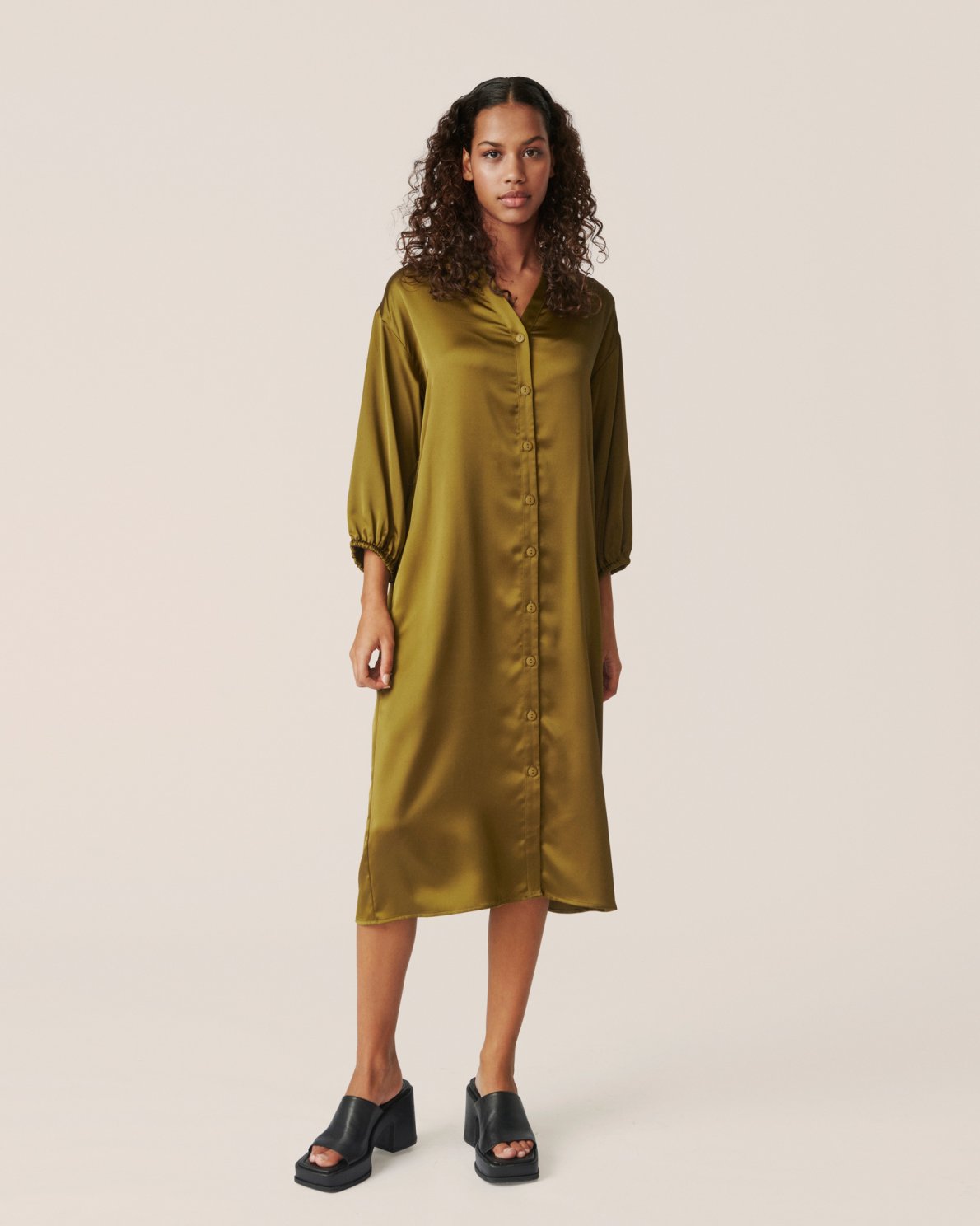 This dress has a regular fit. The model is 173 cm tall and is wearing a size S/M.