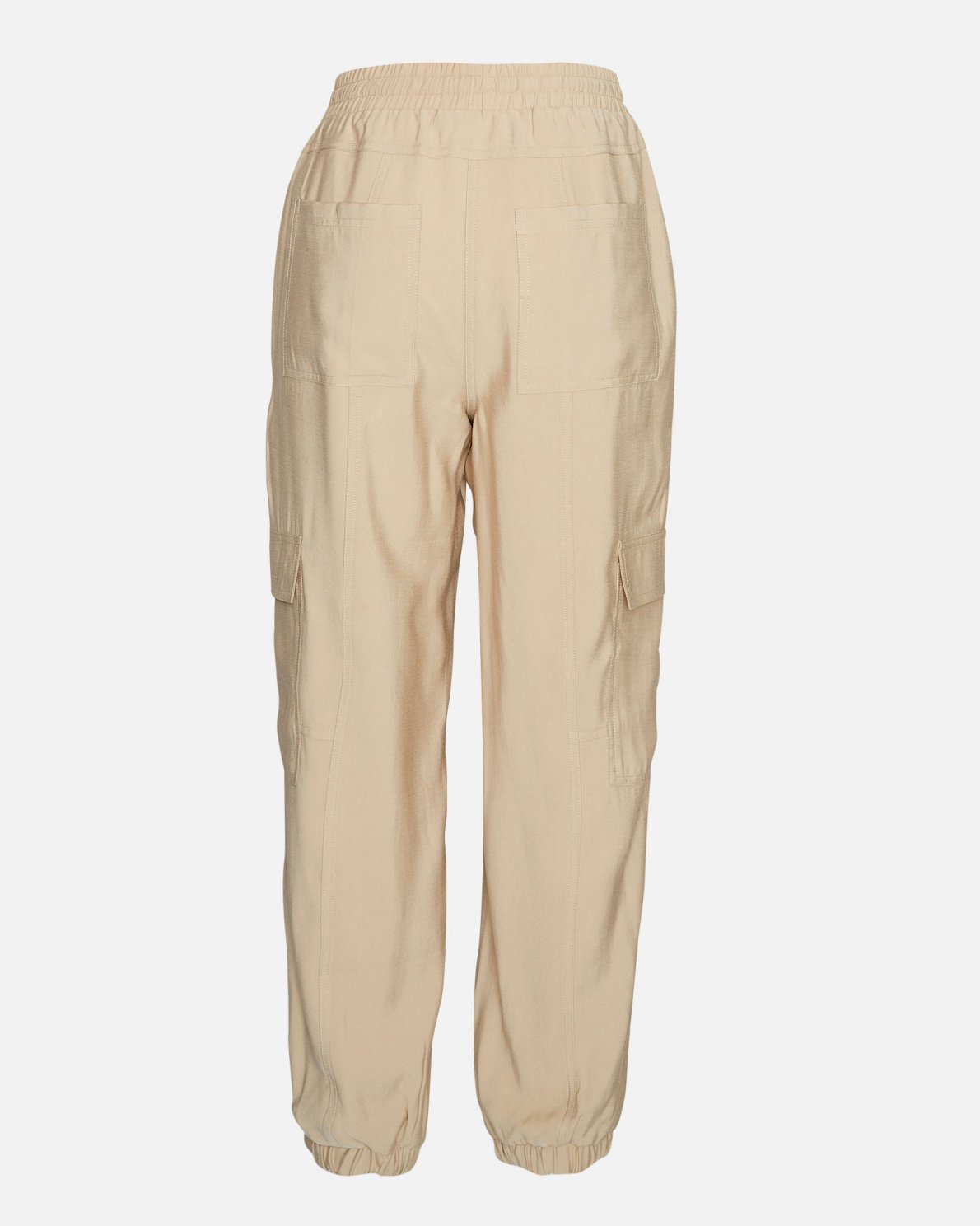 Cargo is hot. It features side pockets, elastic waist, tie string at the waist and elastic at the ankles to make it a relaxed silhouette. Style with a crochet top or an oversized shirt.