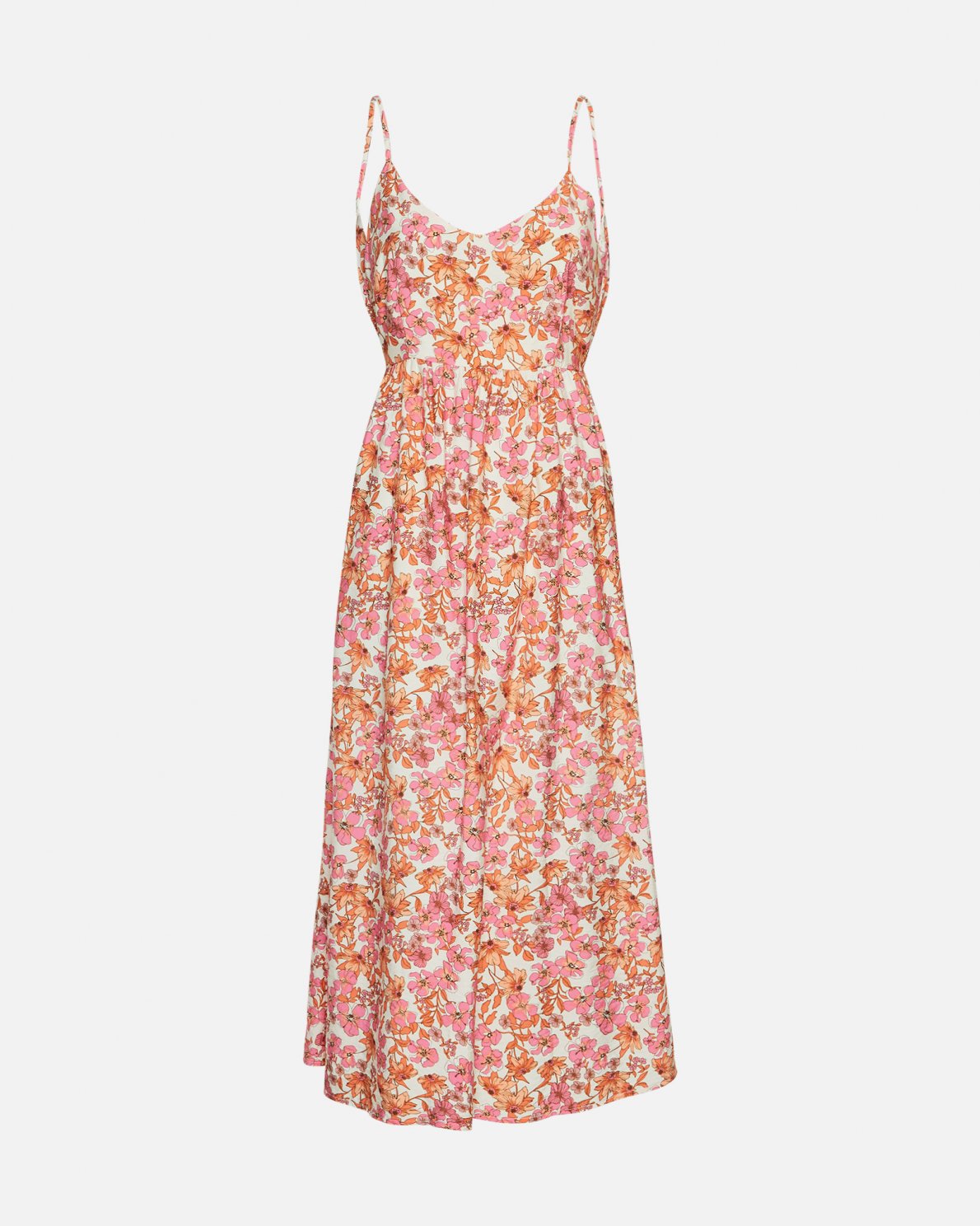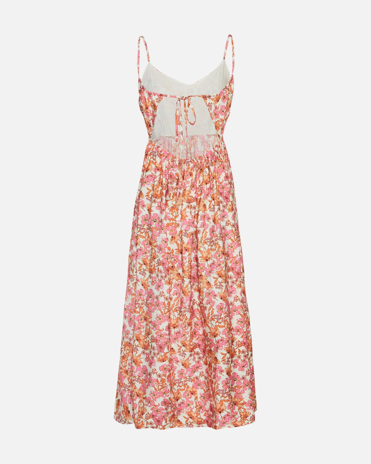 An absolute summer dream which definitely turn heads This strap dress is a sleeveless midi dress with smooth V neckline and an open back. Tie strings add a feminine touch to the gatherings at the back, creating a flattering silhouette in this heavenly flower print. Wear it for casual occasions with friends or a fancy summer party and get ready for a lot of compliments.