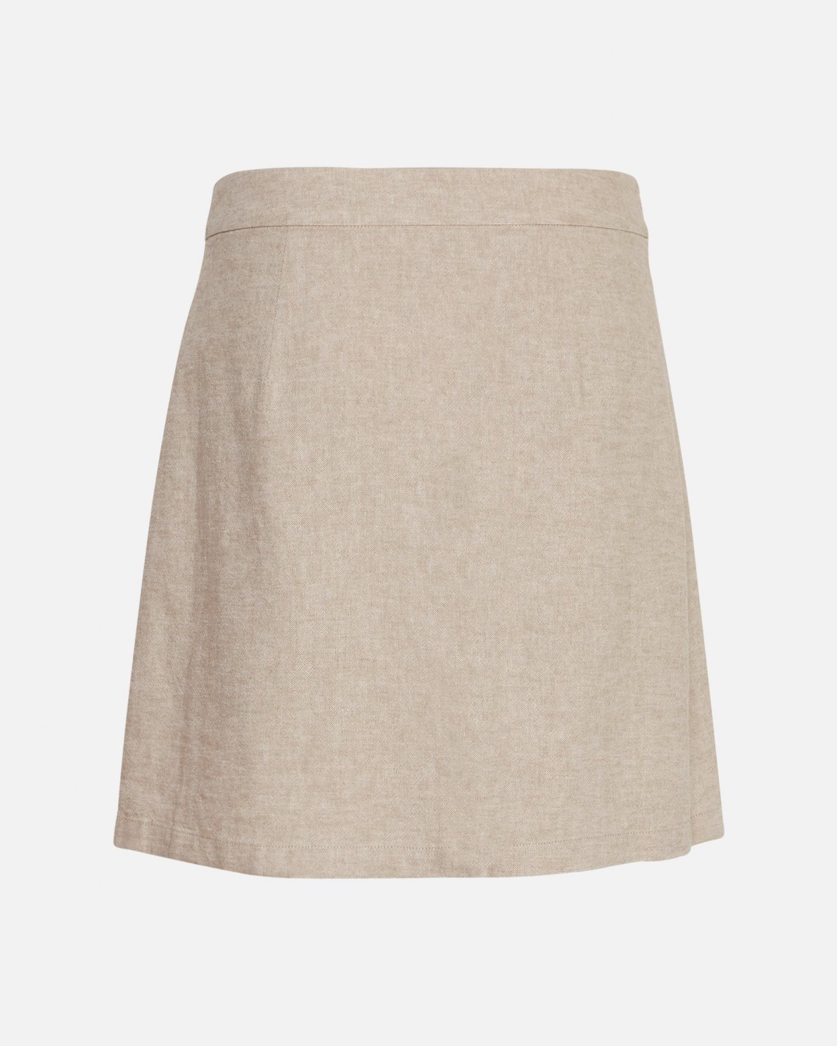 This a-shape skirt has a wrap-over design, mid-knee length, and is completed with a button fastening. It is made of light and soft material in a nice linen blend. Style it with a matching shirt or mix it with other of our linen styles.