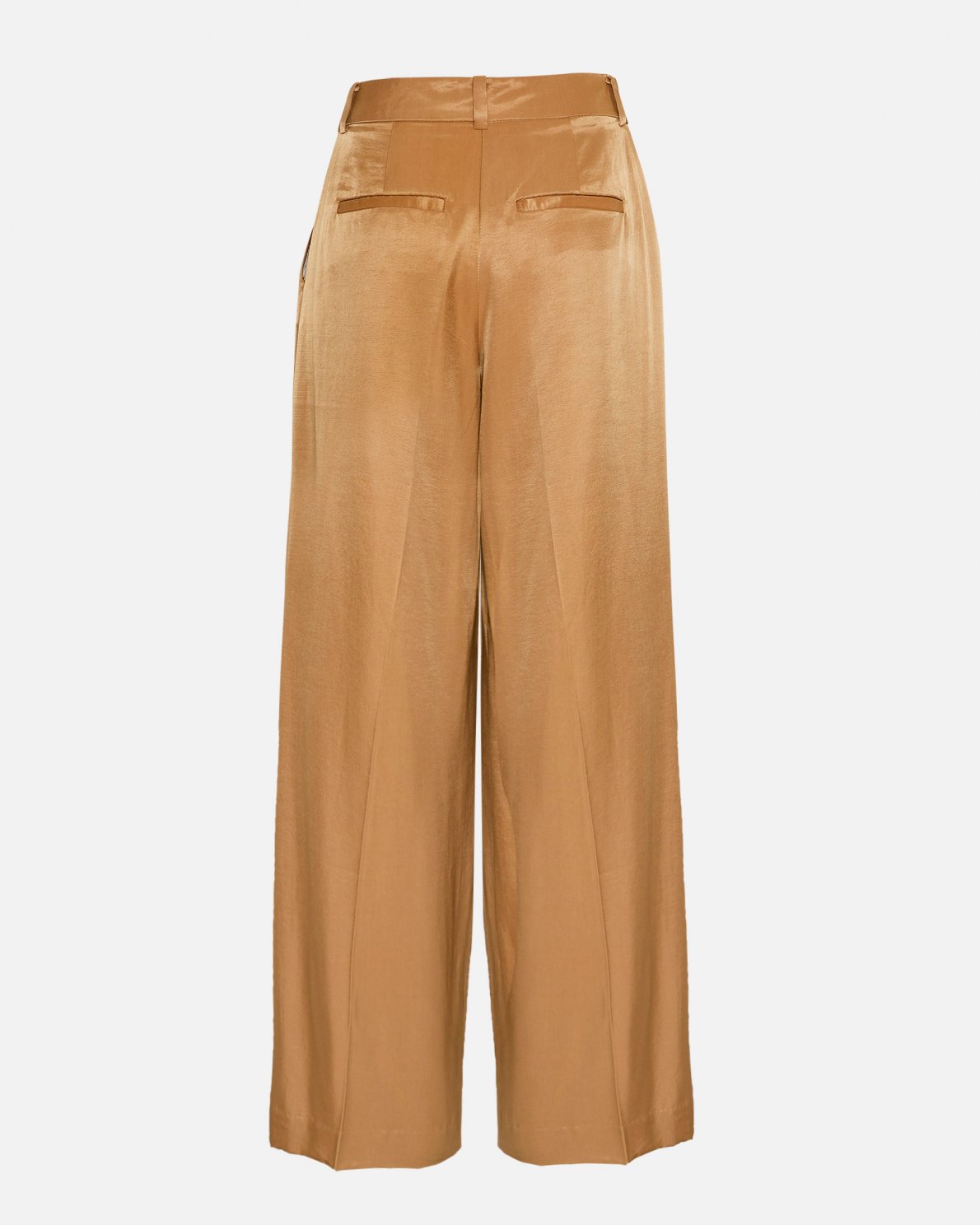 Easy to wear, chic wide-leg fit pants inspired by menswear tailoring. It can be worn casually or dressed up, a high wasitline and pleats structure the silhouette with feminine elegance.