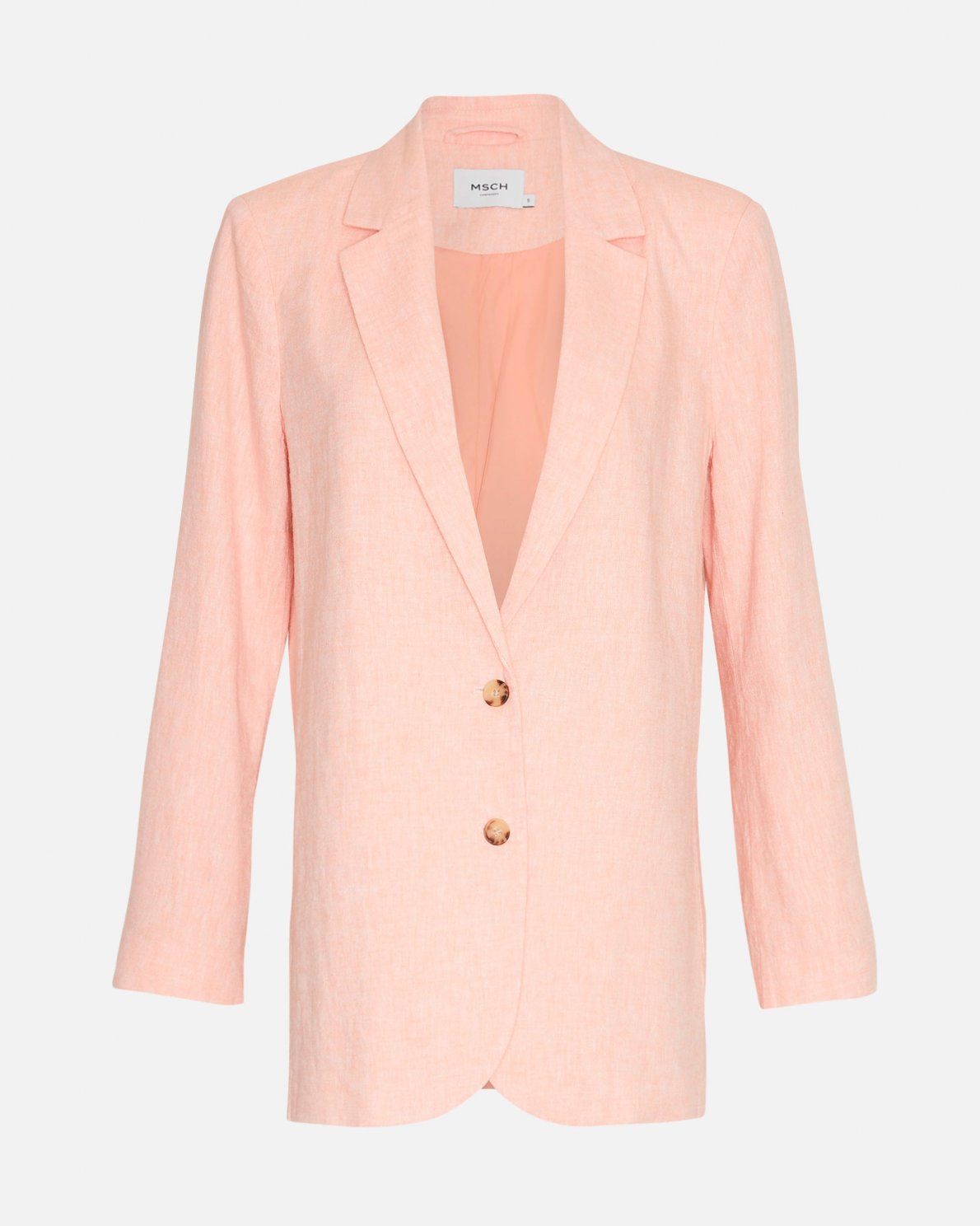 A lightweighted long blazer with two buttons made of soft material in a nice linen blend. Select a matching linen style to complete your look, or tone it down with a pair of jeans for some simplicity.