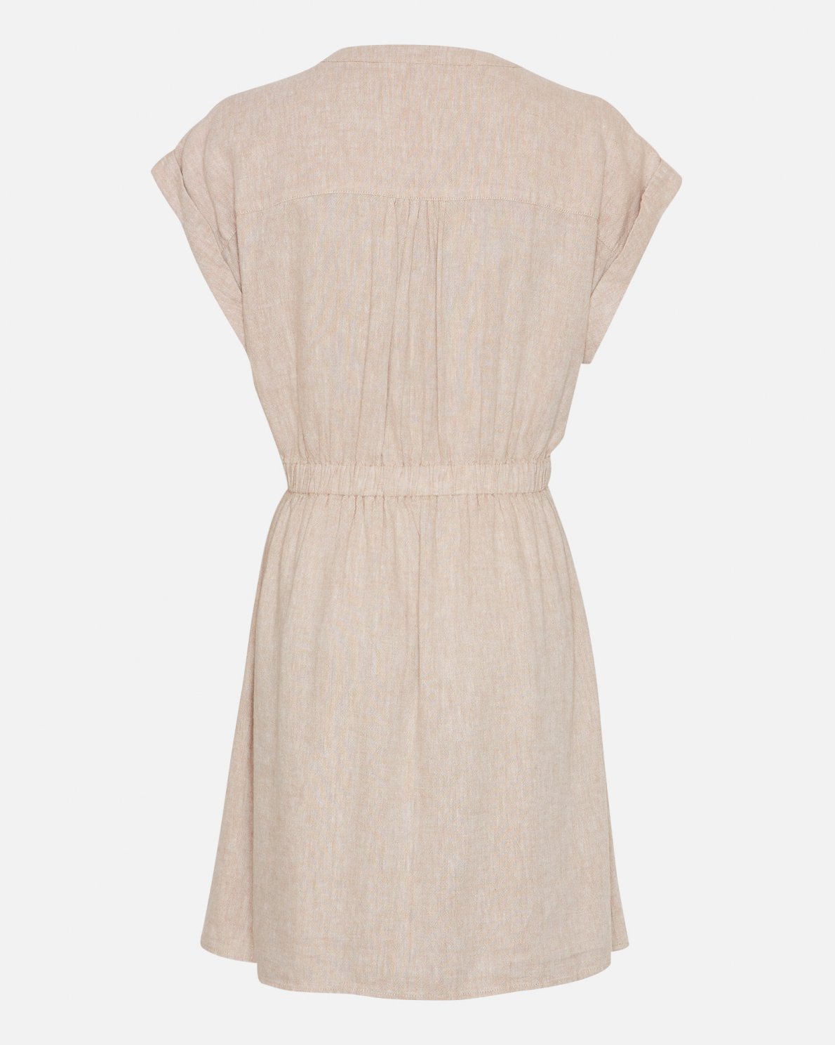 Short dress in a soft linen blend. It features V-neck, tunnel, fold-up short sleeves,button closure, and elastic waistline making a flattering shape. Perfect for breezy summer days.