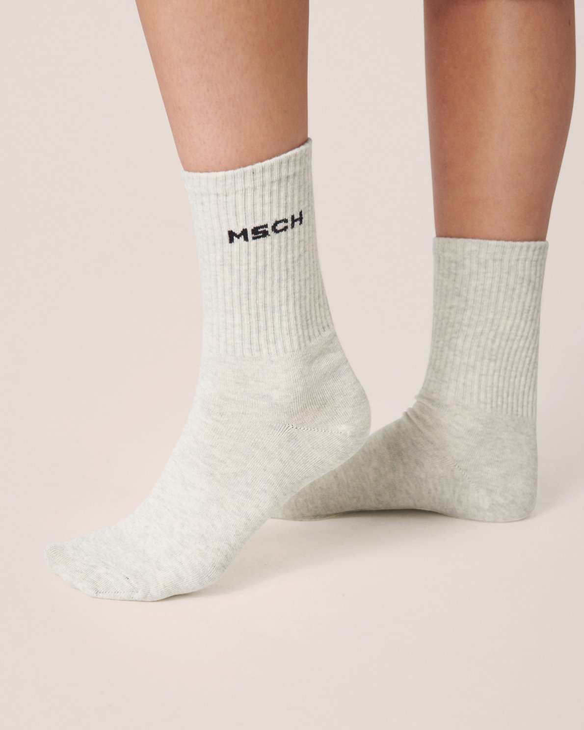 These socks come in a pack of two: a pair in white and grey. Double cylinder rib socks that you will love as your second skin. They have a mid cut and a cool branded design.