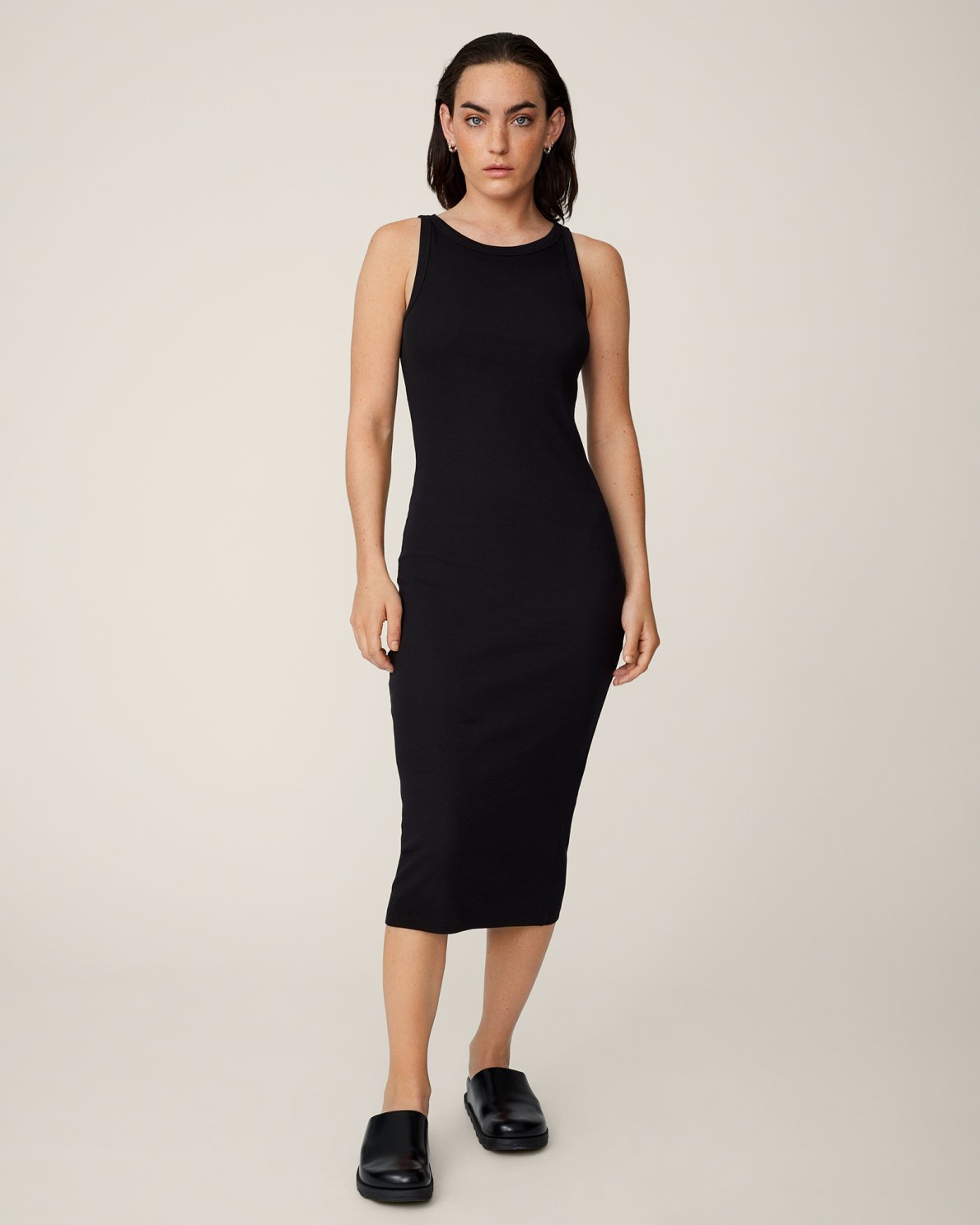 Easy to wear and light jersey dress, beautifully highlighting your shoulders with its high neckline. Its midi length and slim fit makes a feminine silhouette. It is a MSCH Copenhagen essential.