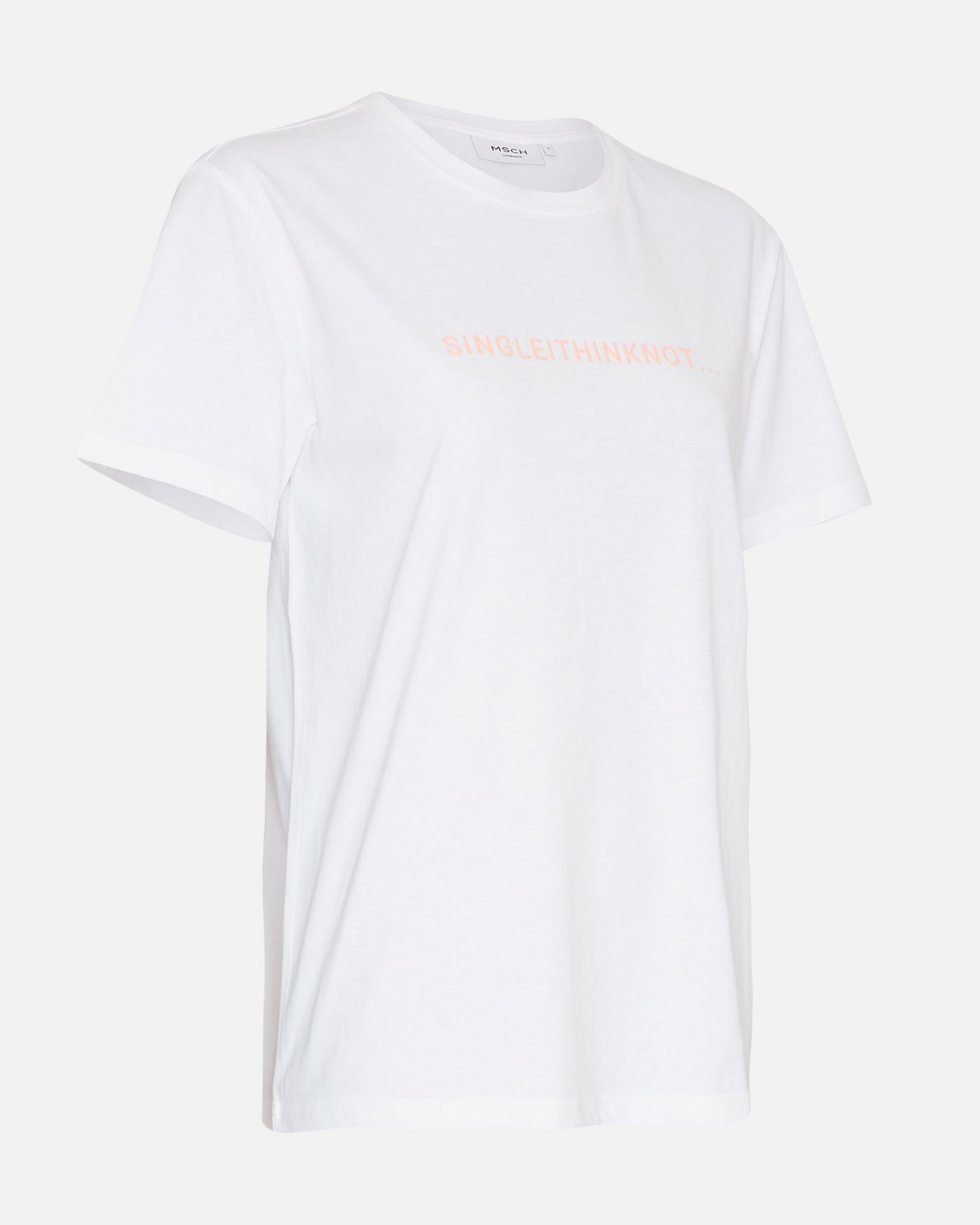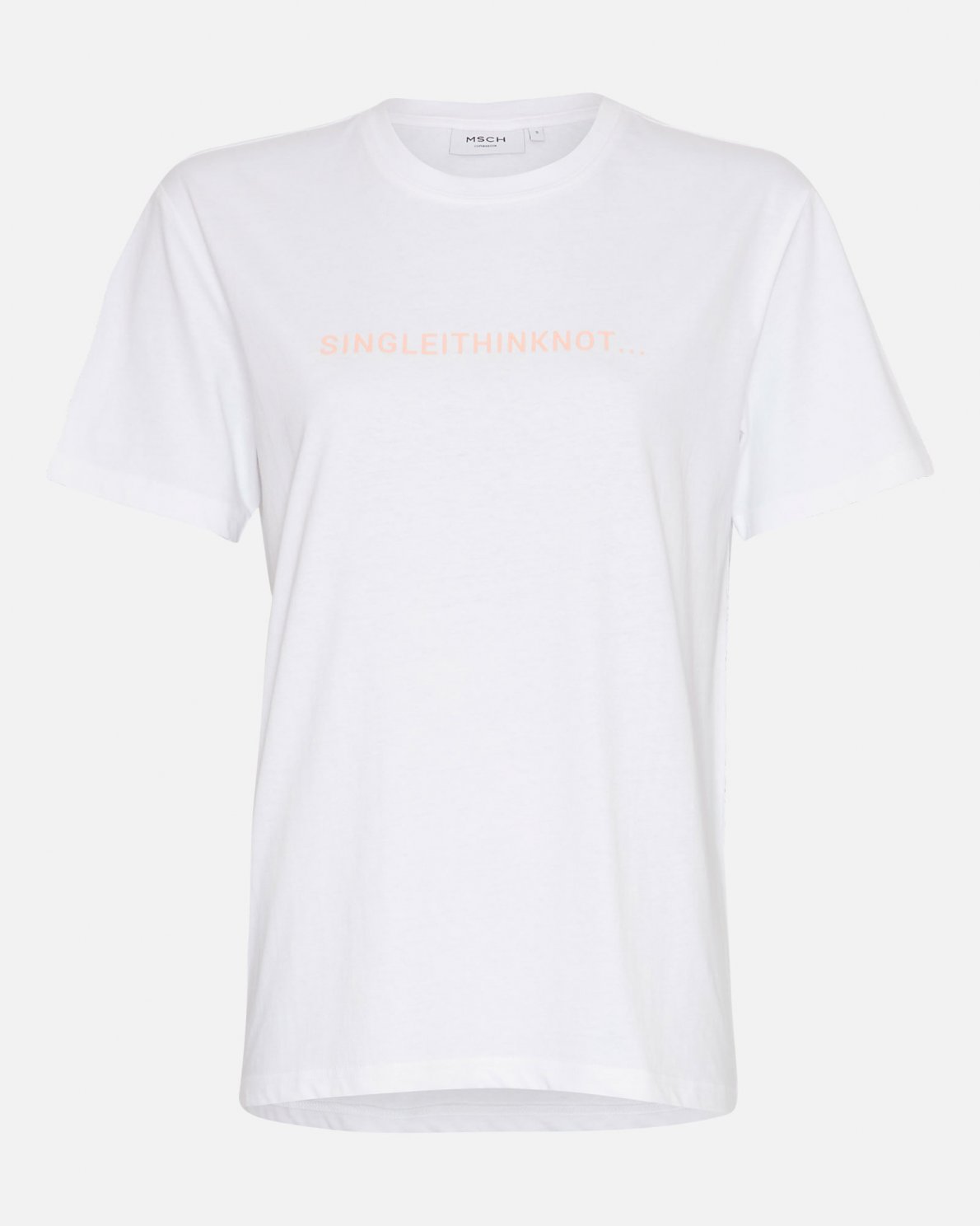 A new take on our organic tee. It features round neck, short sleeves and a soft fabric just like its sister, Liv Organic Tee, with a sassy deatil of the front rubber print saying Single I think not.