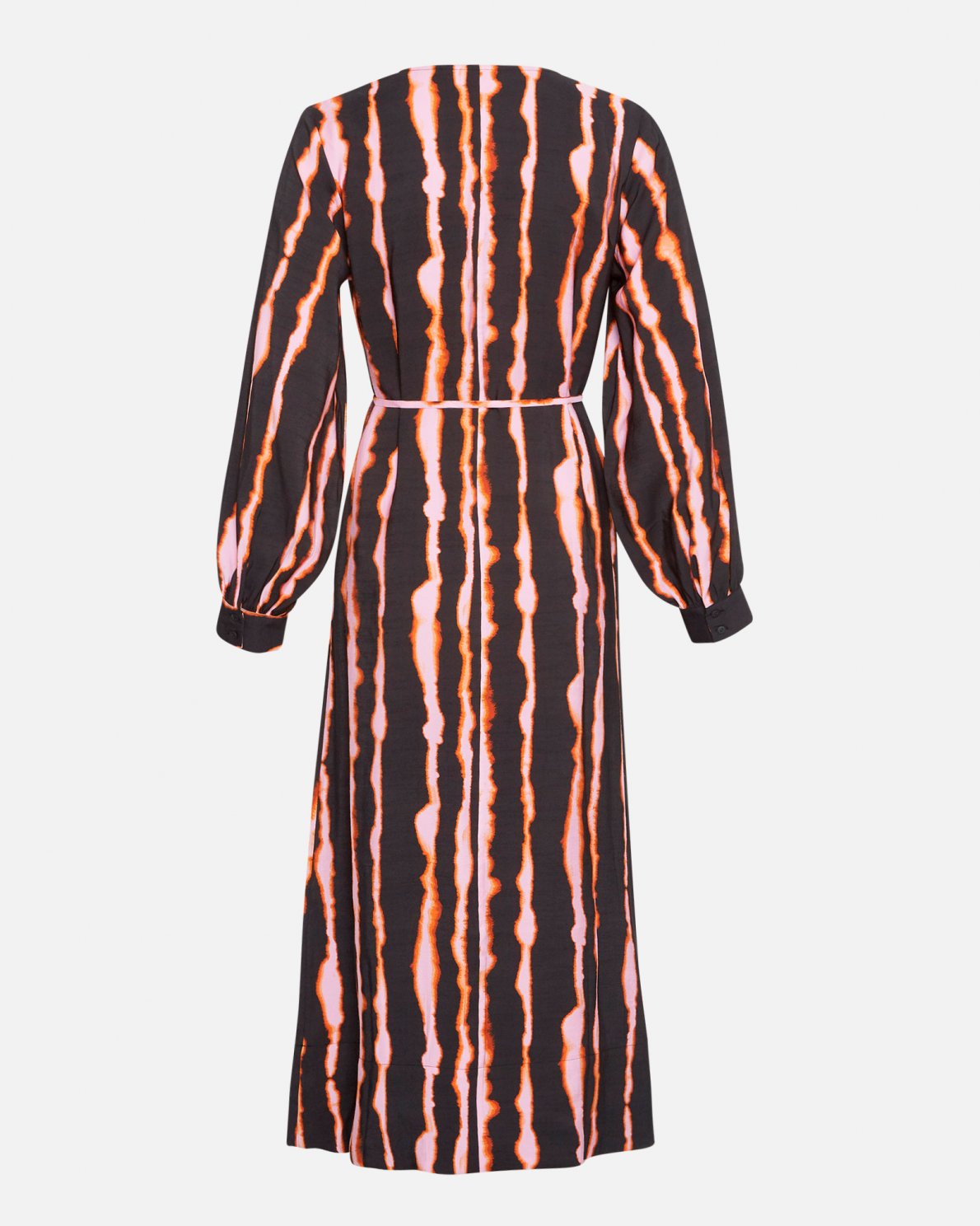 This dress boasts a captivating horizontal printed pattern, adding a touch of feminine charm to your look. The V-neckline and volume sleeves offer an elegant and flattering silhouette with its maxi length. This timeless piece has a thoughtful design: it comes with a tie belt, allowing you to customize your look. Use the belt for a more tailored and feminine apperance, or wear the dress without for a relaxed and laid-back silhouette to highlight your individuality. With the additional side pockets, this long dress provides not only a chic and minimalistic look, but will also be a functional choice for a busy day ahead. Selfrida will elevate your style game and make a statement wherever you go.