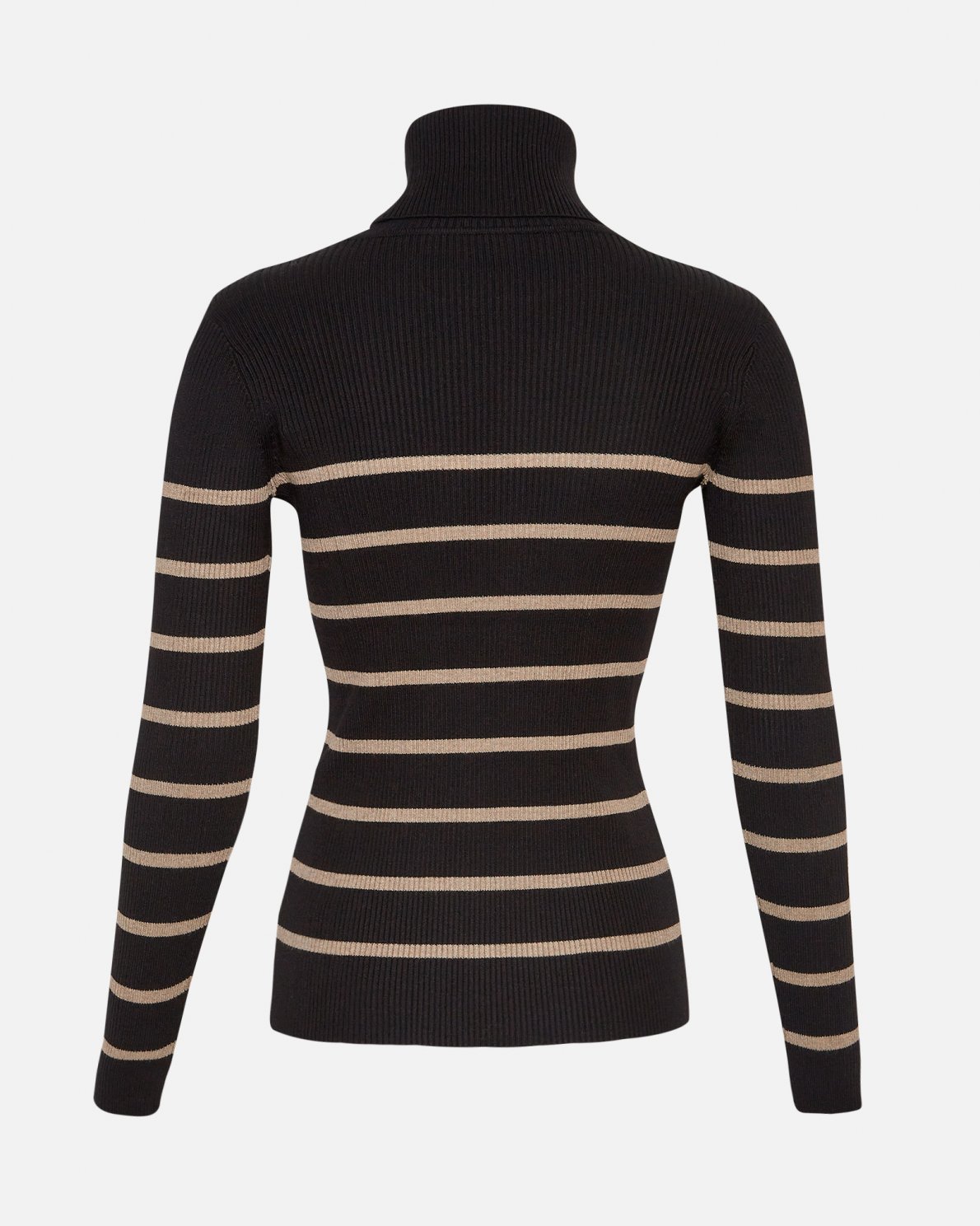 Our Harike range, is a collection of fine yet firmly knitted pullovers. It's soft yet holds its form comparen to loose fitted pullovers. It's perfect as an everyday top, and good layering under a blazer or a waistcoat. It's slim fit and features a atypical striped pattern where the top of the pullover is block coloured.