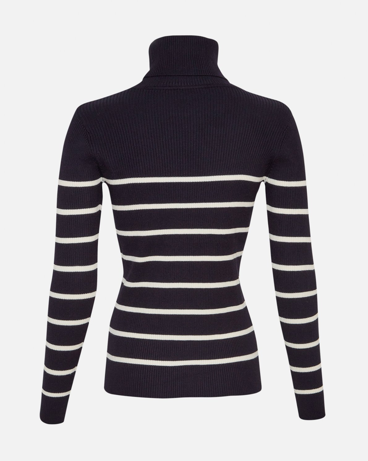 Our Harike range, is a collection of fine yet firmly knitted pullovers. It's soft yet holds its form comparen to loose fitted pullovers. It's perfect as an everyday top, and good layering under a blazer or a waistcoat. It's slim fit and features a atypical striped pattern where the top of the pullover is block coloured.