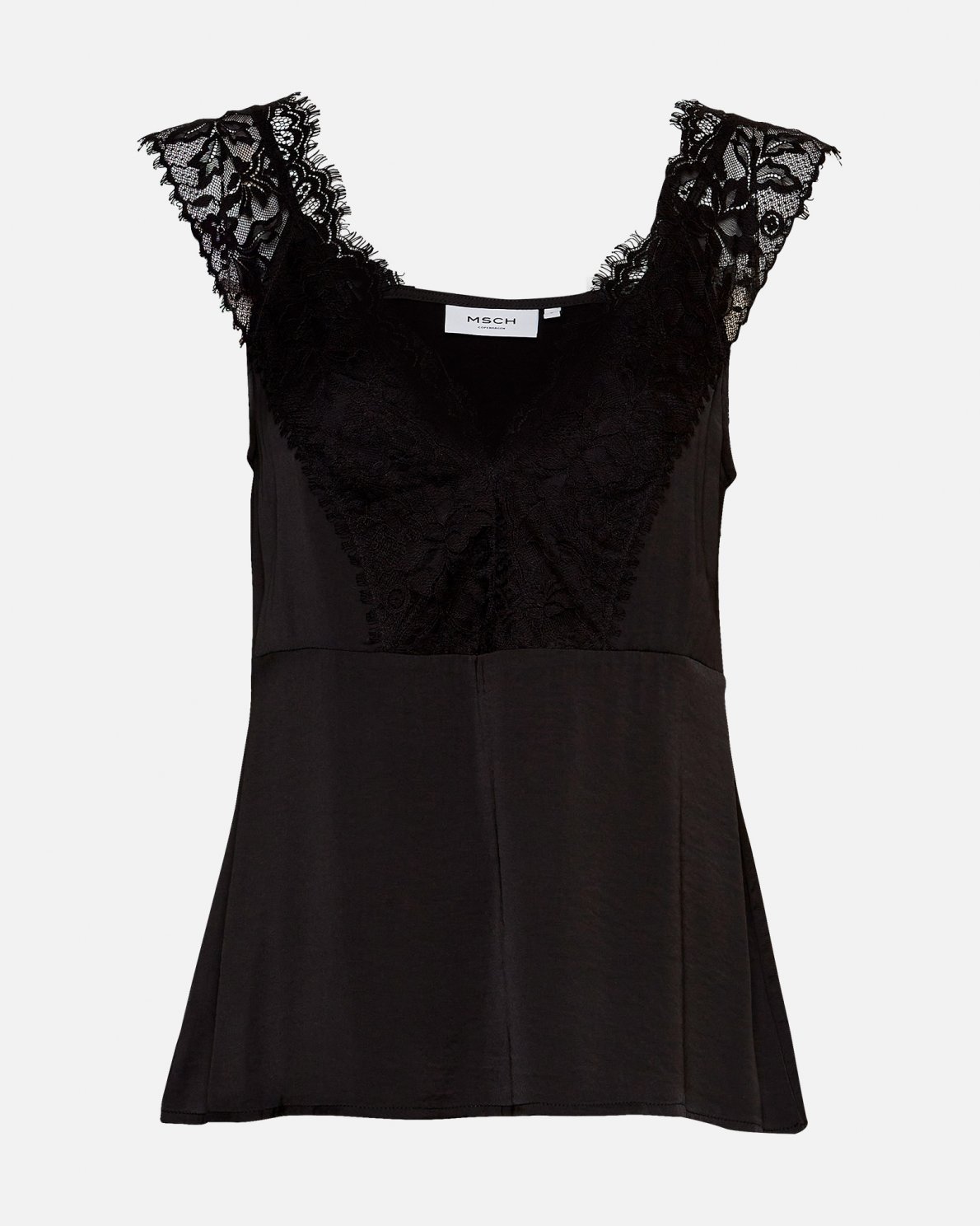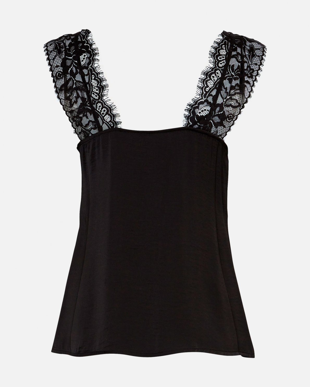 Our Adienna top has thin straps and a semi deep V neck, decorated with floral lace. The top is perfect both to wear op it's own or to wear underneath a shirt. If you want to wear it as a top during these colder days, style it with a blazer, to create a elegant look.