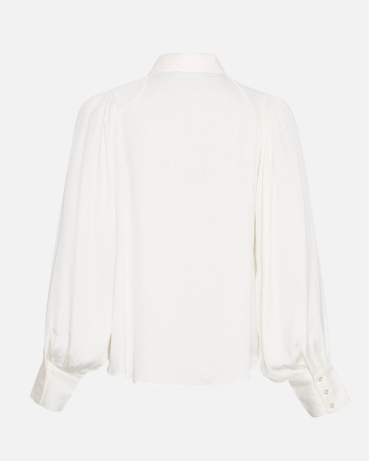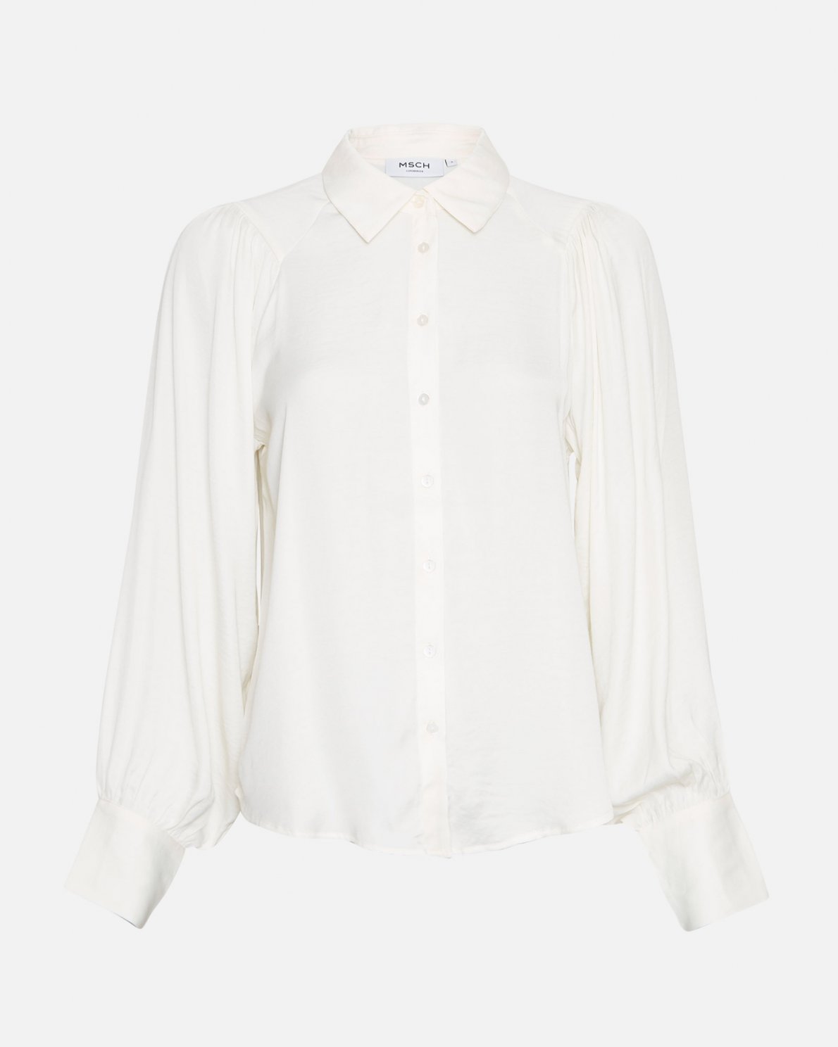 The Maluca shirt is a combination of classic and trendy with a touch of the pyjamas trend. It's lightweight and flowy, with ballon sleeves, a classic collar and cuffs. The classic white colour and the shiny look to the material makes it perfect for dressing up jeans, or used in a more formal occasion.