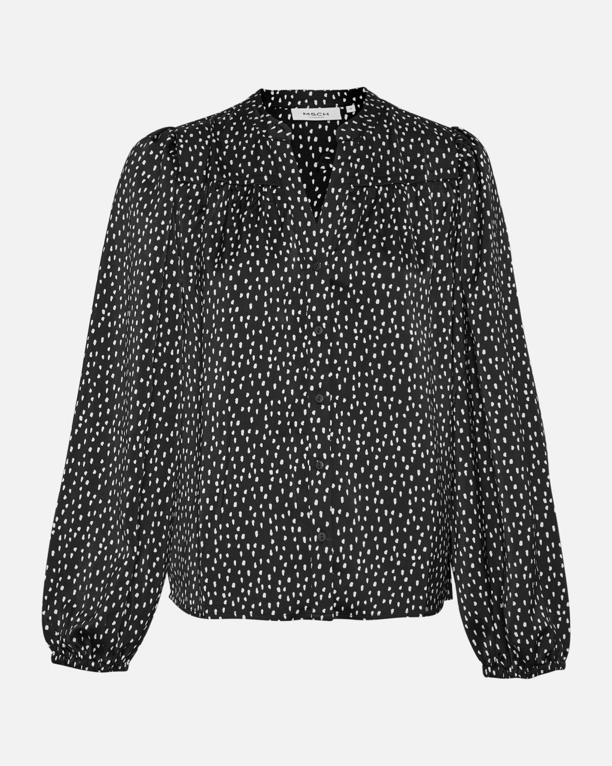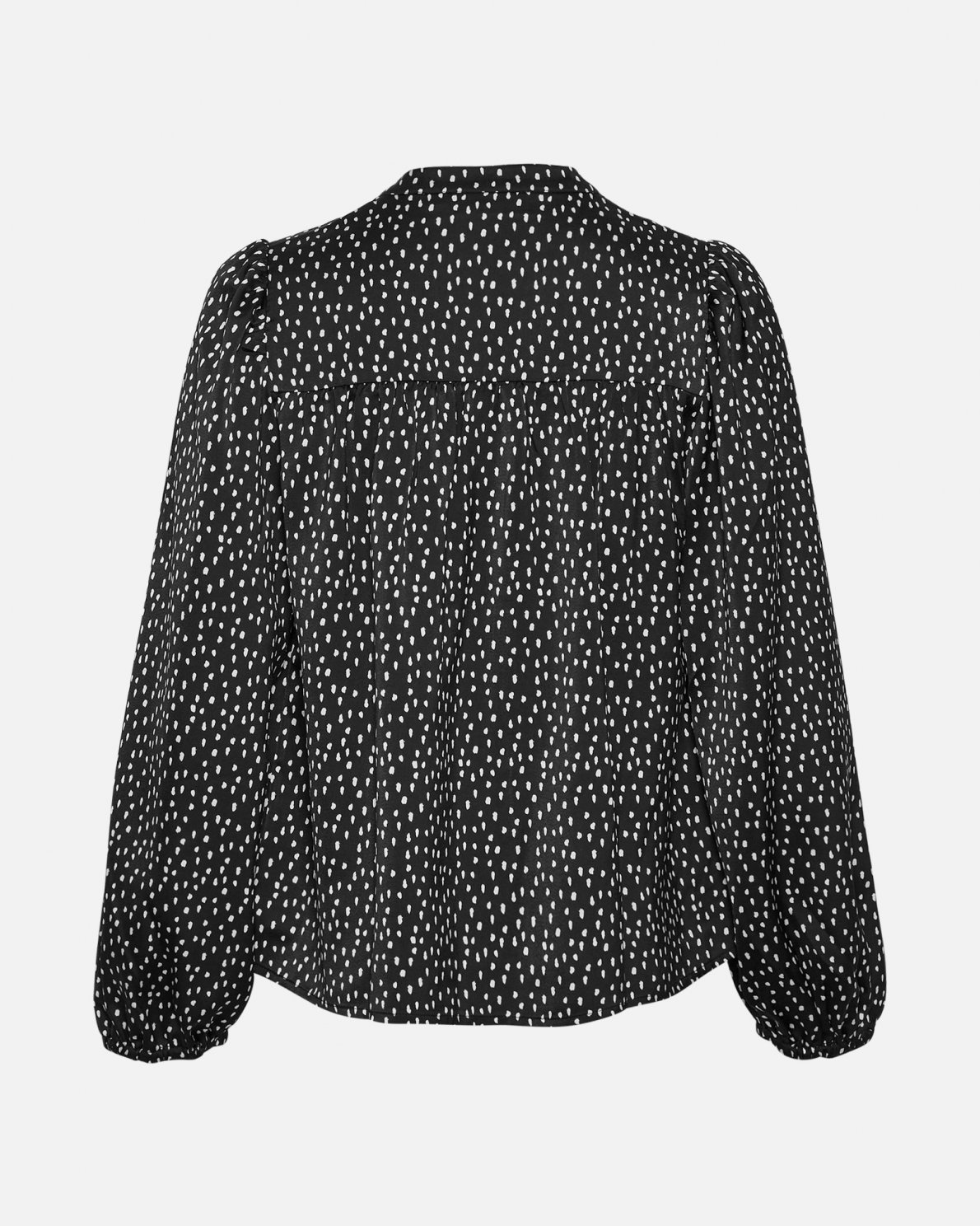 The Hannalise shirt is made a lightweight and flowy fabric, and with the simple print offering a versatile piece that seamlessly transitions from casual to more polished occasions. The Hannalise Shirt features a versatile silhouette, perfect for various styling options. Whether worn loosely over jeans for a relaxed look or tucked into a high-waisted skirt for a more fancy outfit, this shirt complements a range of outfit choices.