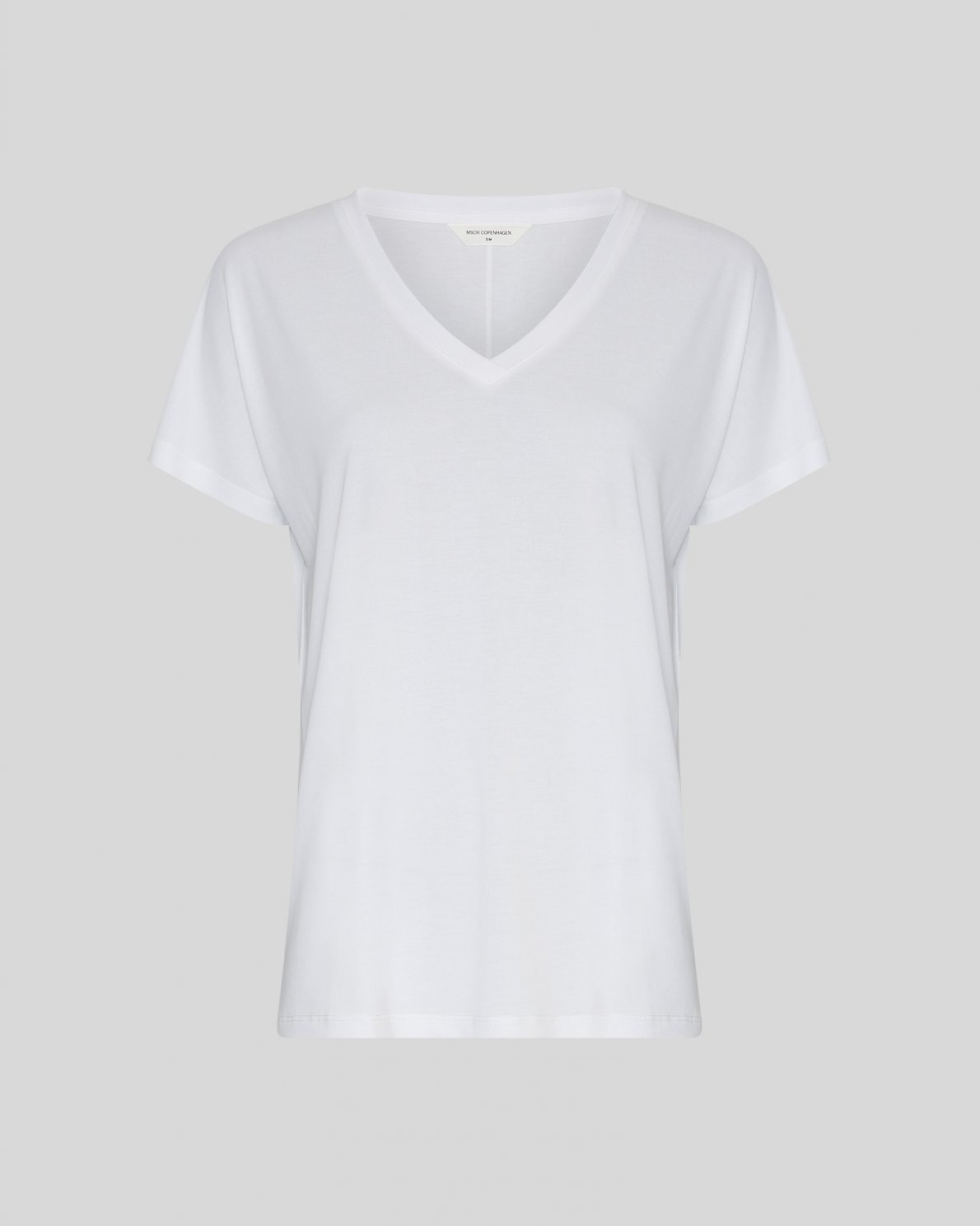 An absolute MSCH favourite, now with a V-nekcline and short sleeves. It has super soft, sandwashed modal fabric, which makes it super comfortable to wear. It goes with everything: jeans, relaxed fit pants, a cute skirt. Throw on an oversized blazer to elevate this basic tee.