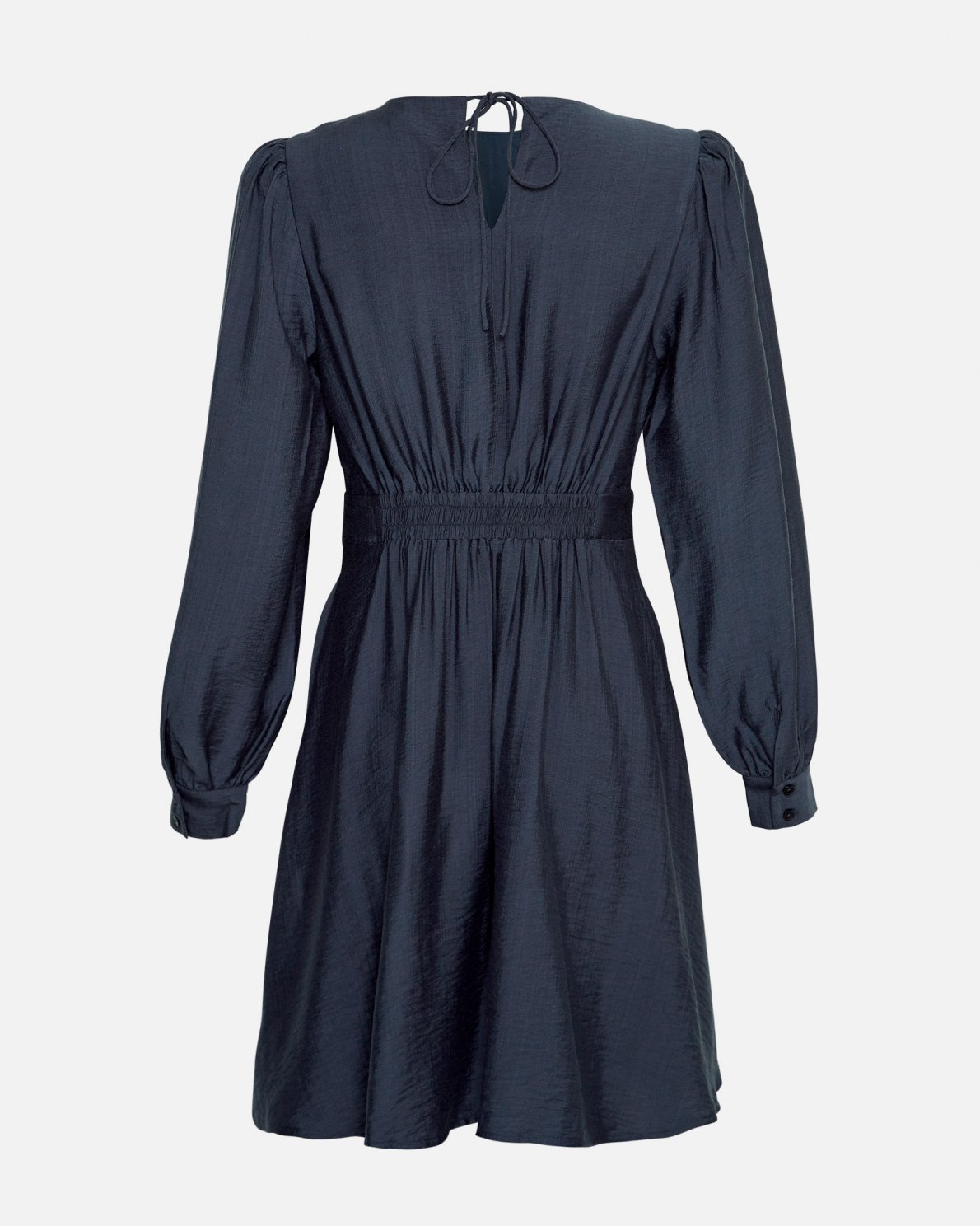 The Illarie dress is a classic, sophisticated elegant dress with its simple design that never goes out of style. A beautiful slightly puff sleeves, a tie closing at the neck and a tailored waist will enhance your figure. The dress works in every season due to the classic deep blue color.