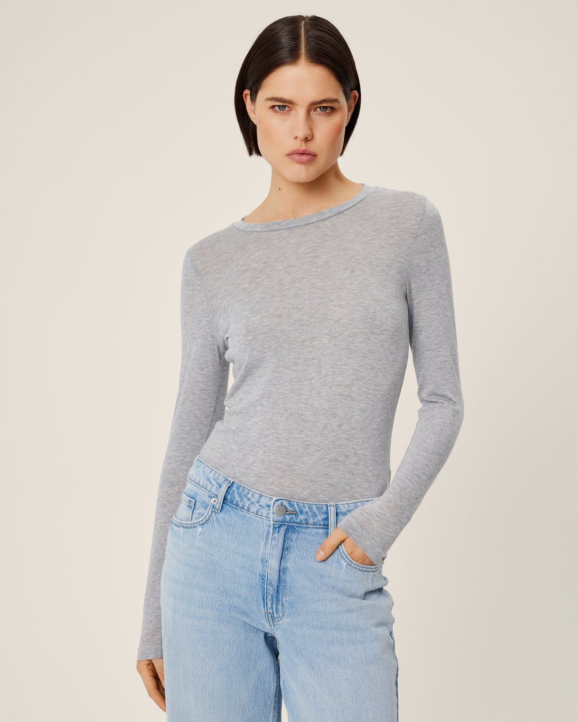Chatera is a basic essential top, combining simplicity and effortless style. This long sleeve top is designed for a flattering slim fit with a body hugging feature. It features a timeless round neckline and long sleeves, making it the perfect wardrobe staple for colder days. It is crafted with high-quality materials, ensuring a soft feel, making it easy to wear as a layering piece. Whether dressing up your tailored suit with this simple yet chic basic top, or styling a pair of casual pants, this top is a foundational piece for any fashion-forward wardrobe.