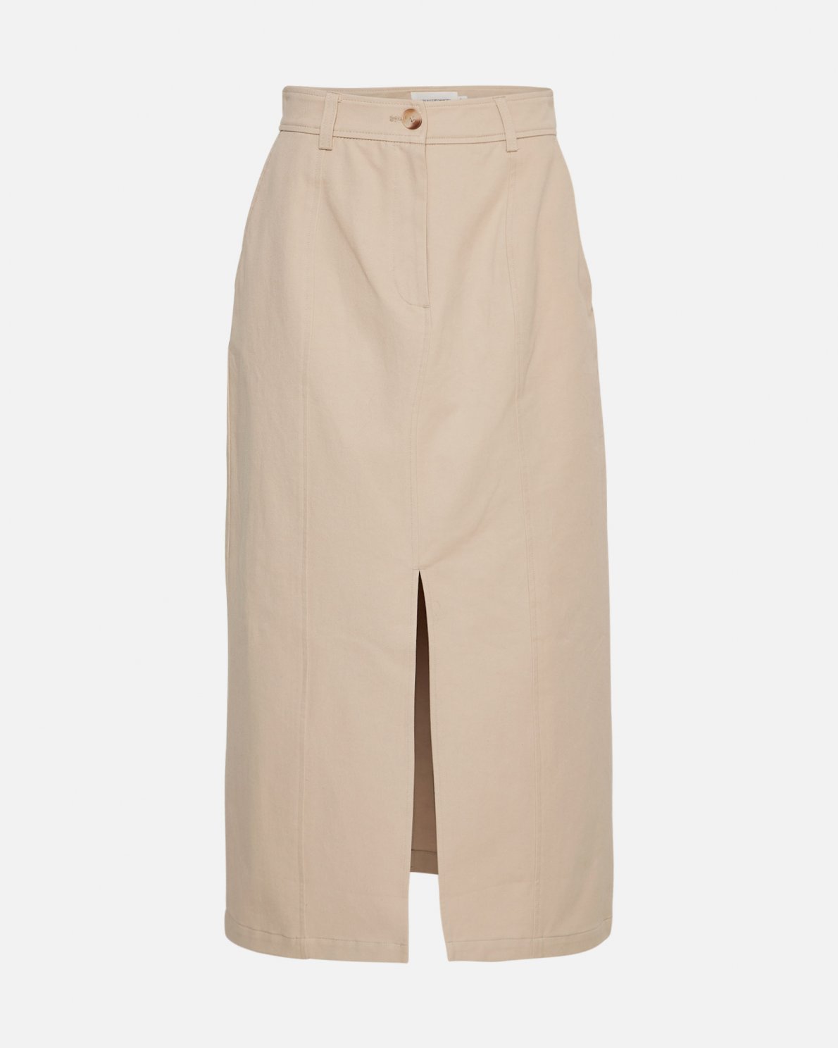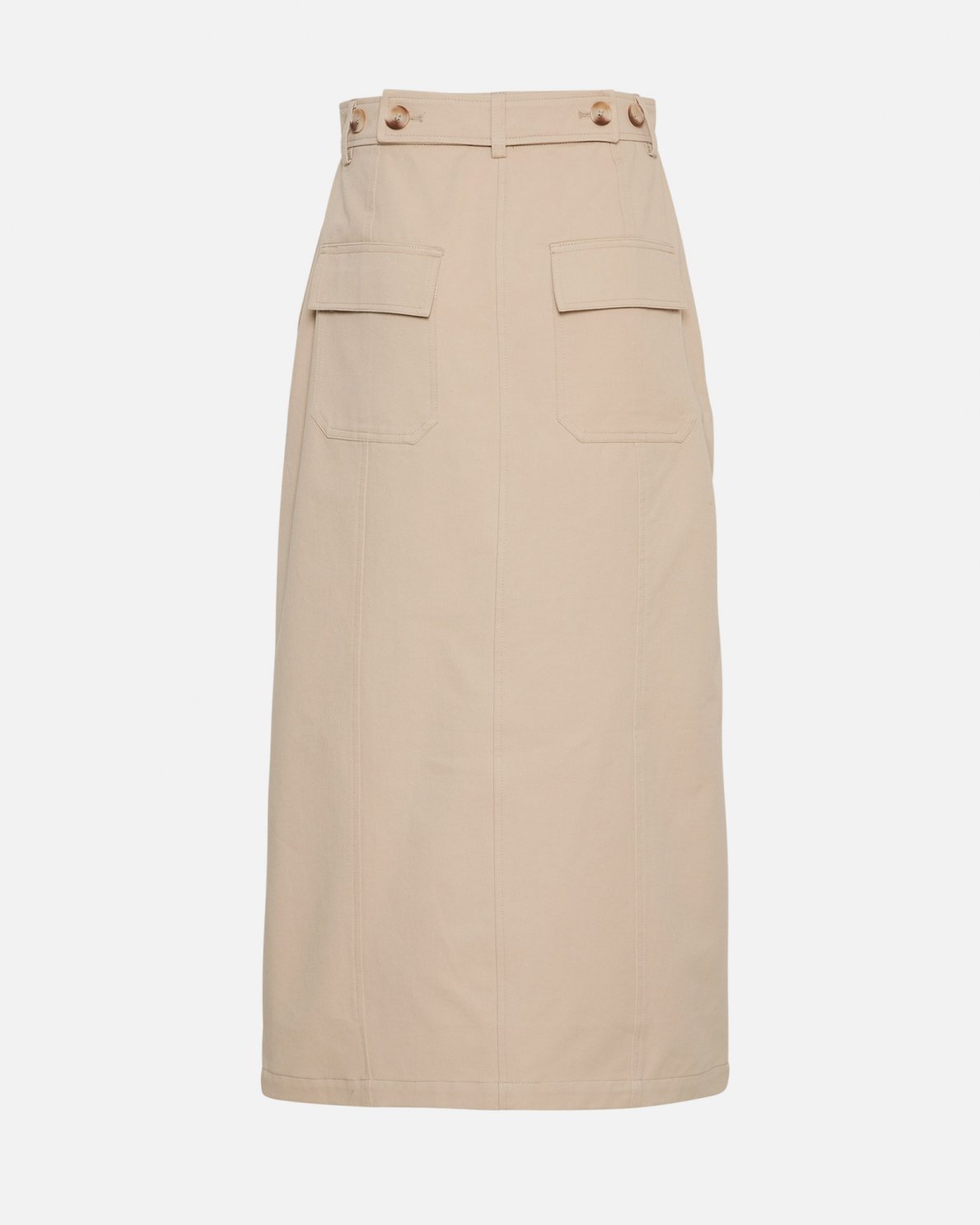 Our Neomea skirt is a mix between the feminine suit skirt and a pair of cargo pants made into a skirt. It's the ideal combination of feminine and masculine which is the essential trend of today. It's made from thick cotton to give you a firm feel, and belt straps to signify the utility of it, while also having a front slit to assure movement. It's below knee length providing you with a long silhouette. Style it with the matching jacket for a perfect matching outfit.