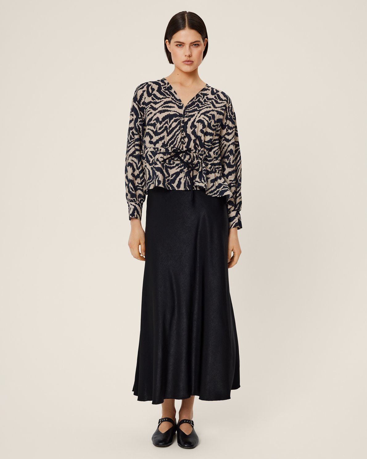 Nicolette is a long flowy, soft polysilk skirt. It features an elastic waistband for both comfot and a more contemporay vibe. The skirt is easy to style both up and down depending on the occasion, it can eaisly be worn with heels and sneakers.