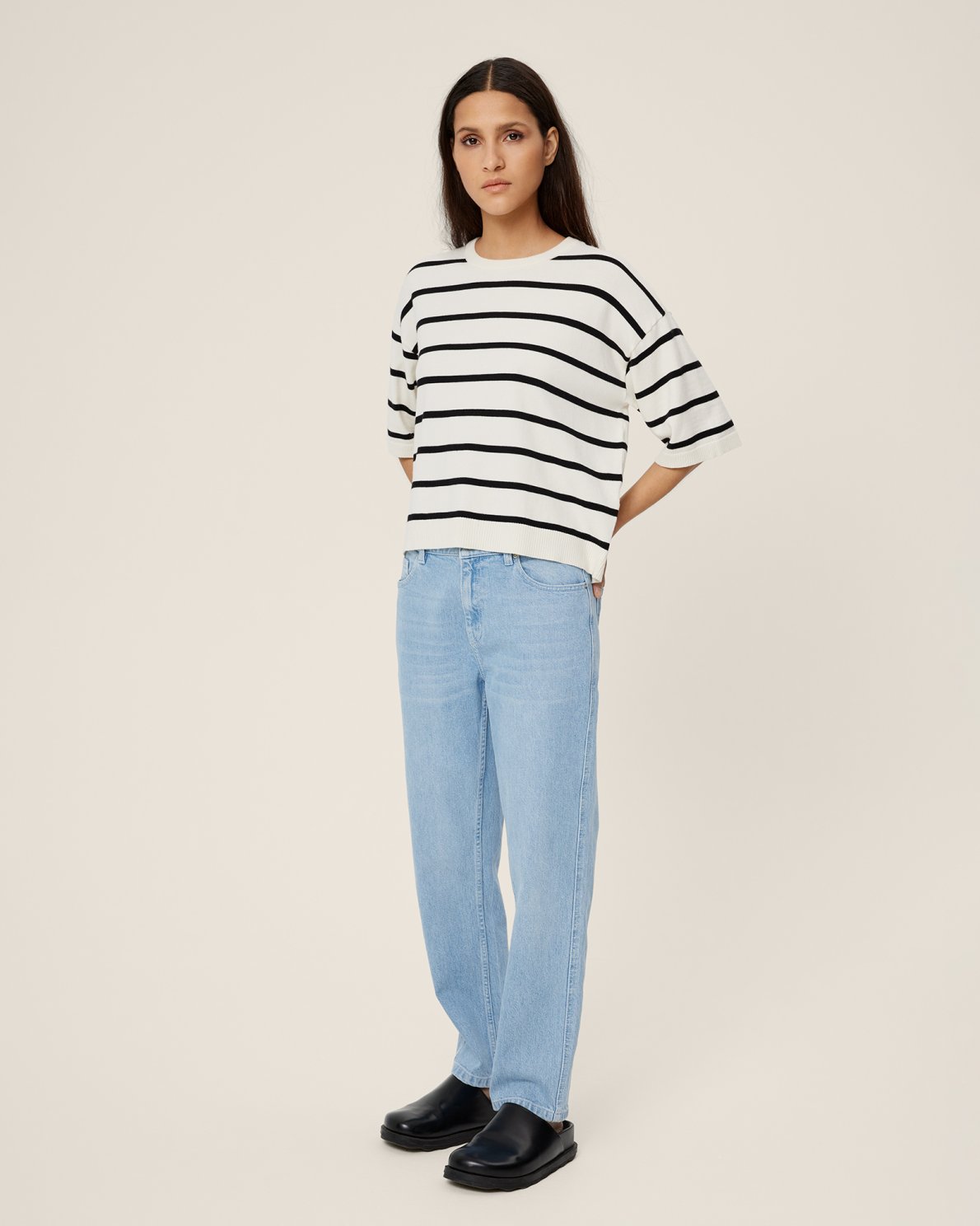 These jeans have a slim fit. Modellen er 170cm og bruger størrelse S.