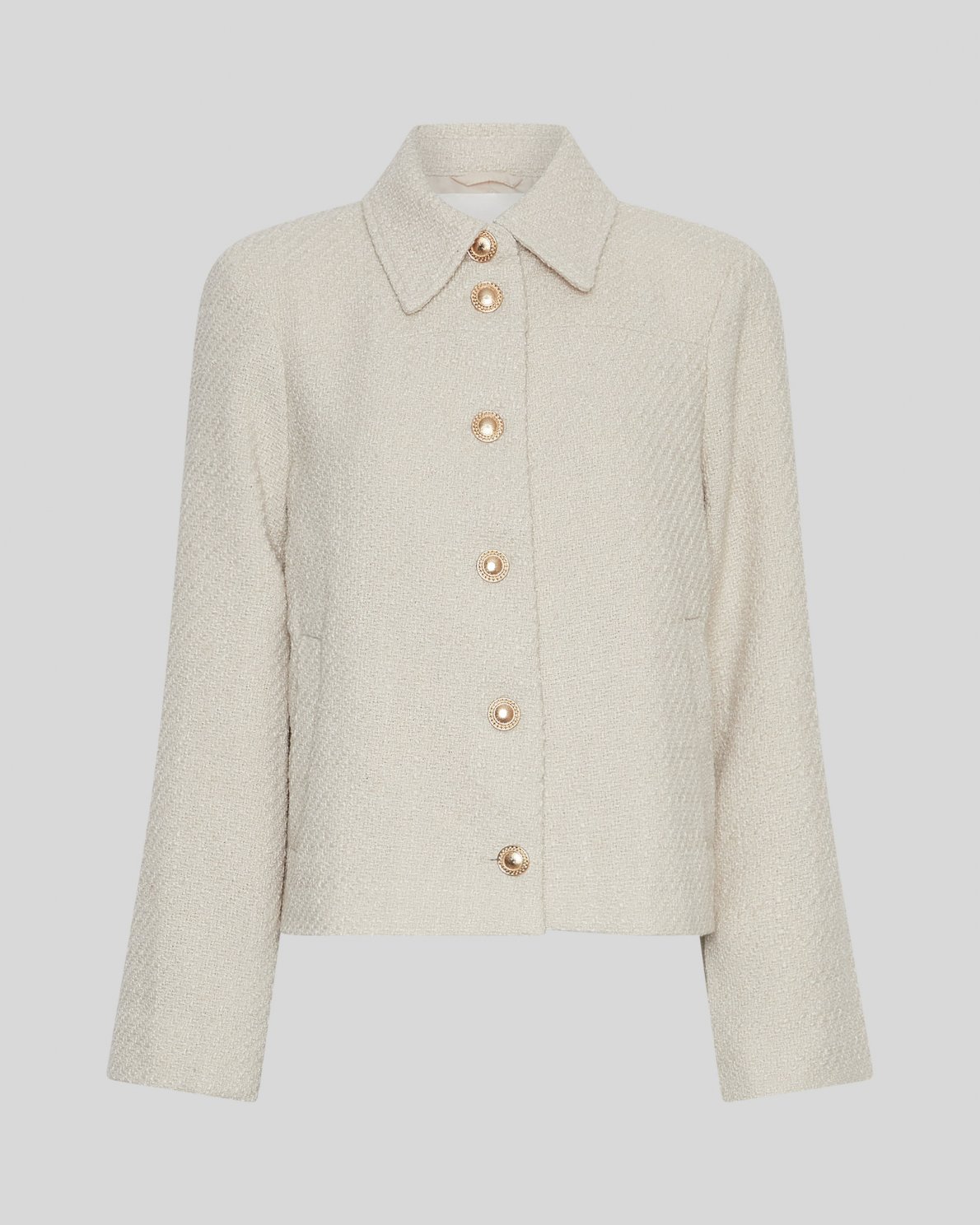Abriella is the perfect short jacket that will be your best companion for any occasion. It features a shoulder padded design, beautiful statement buttons on the front, side pockets and loose sleeves. It is crafted of the finest boucle fabric that adds timeless sophistication to your attire. The loose, relaxed fit provides maximum comfort and casualty to your silhouette. It comes in a gorgeous blue color to ensure that your chic outit will stay out of the crowd and you can embrace your individuality. Pair it with matching pants for a complete look for special occasions, or simply wear it with your favorite MSCH jeans for a laid-back look.