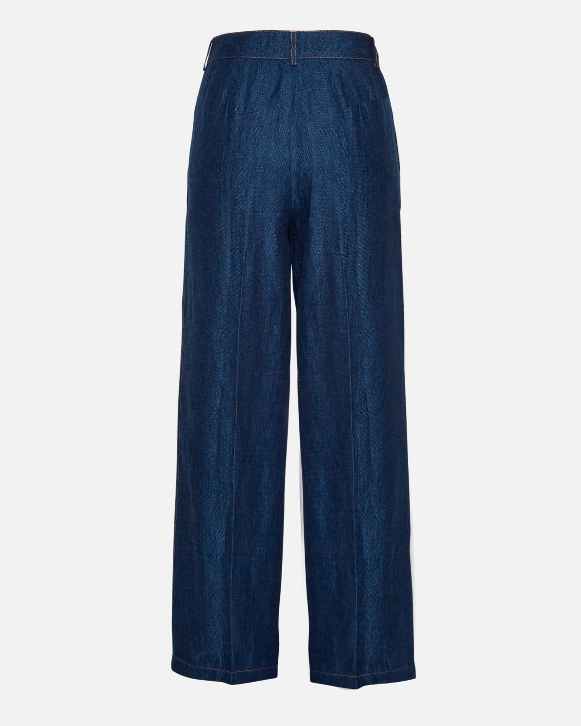 Tailored wide-fit linen pants with press fold, side pockets, contrast stitching detail and belt straps. Select a matching linen style to complete your look, or tone it down with a basic white tee for some simplicity.