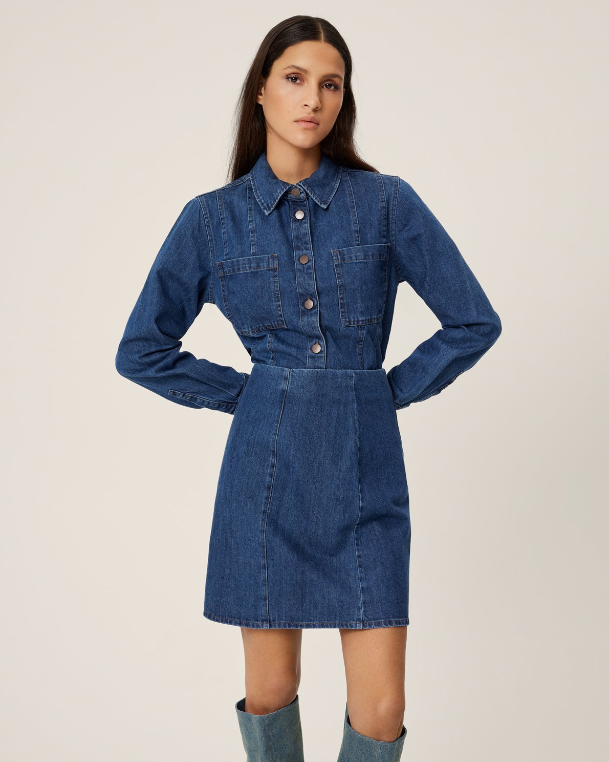 Our newest obsession is this denim skirt, which has slim fit, and is the ideal piece for the denim trend. The skirt has a zipper on the side and lining detail to make this piece a flattering silhouette. Style it with either the matching shirt, an oversized jumper or a white tee.