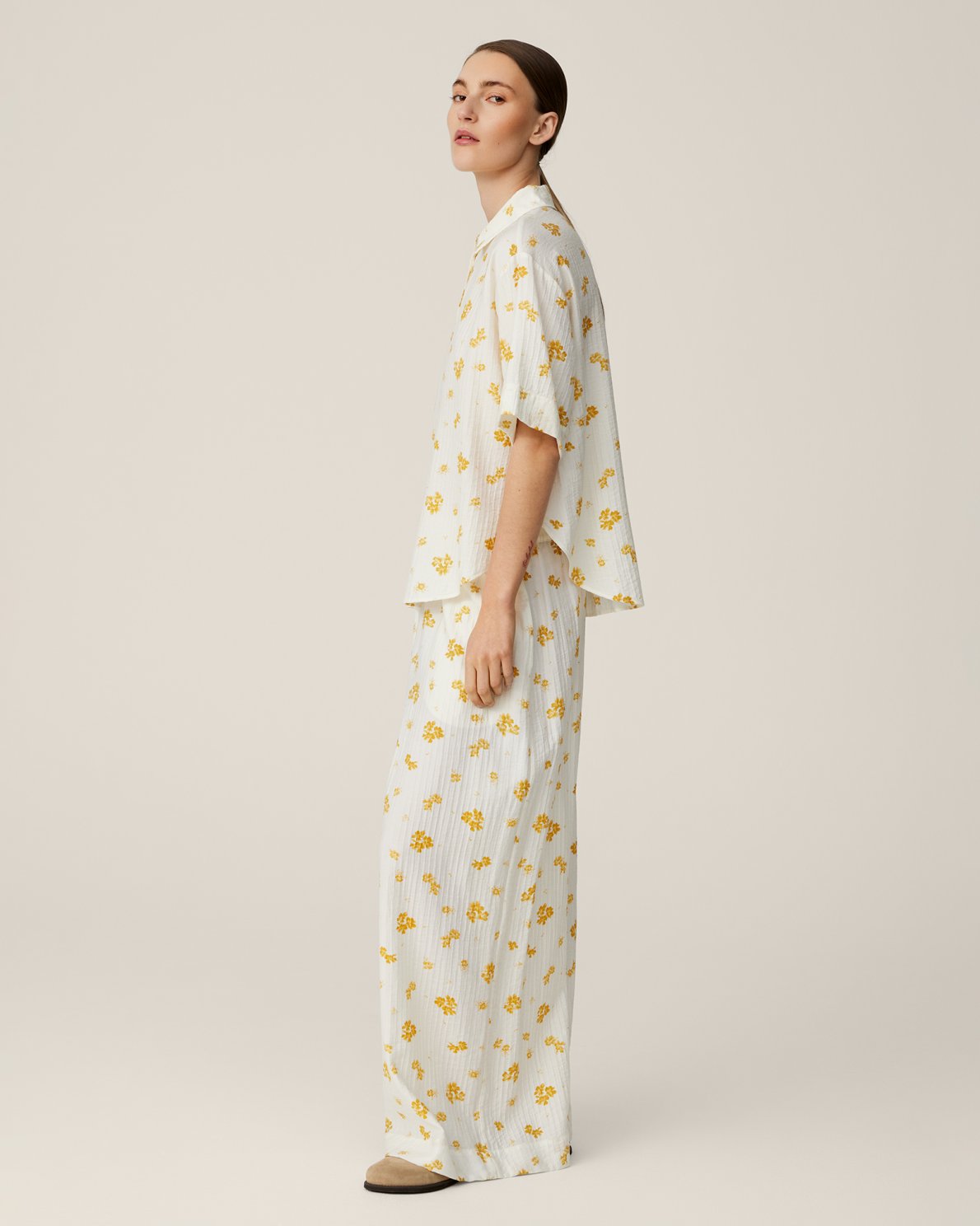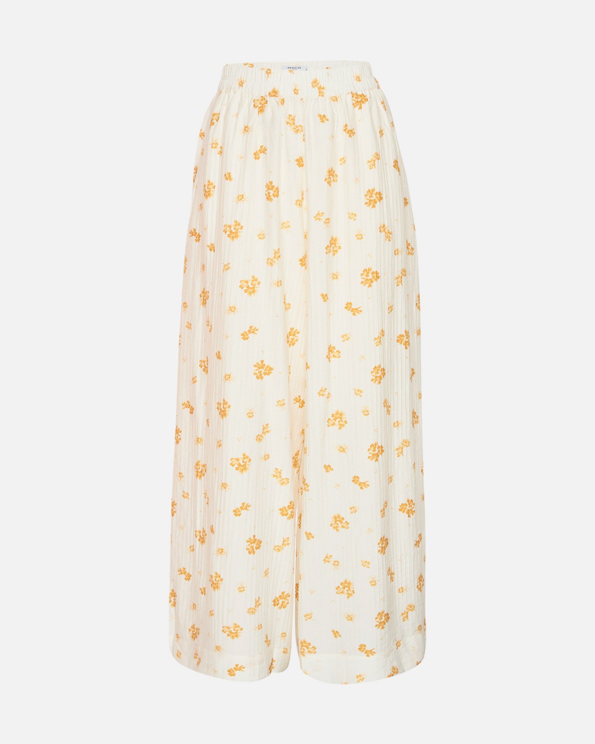 Chic wide-fit pants with summery, flower print. They feature an elastic waist in a high-waist design, full length and beautiful flower print in a comfortable, structured material. Pair with matching shirt for a complete look, or tone it down with a white T-shirt for a casual outfit.