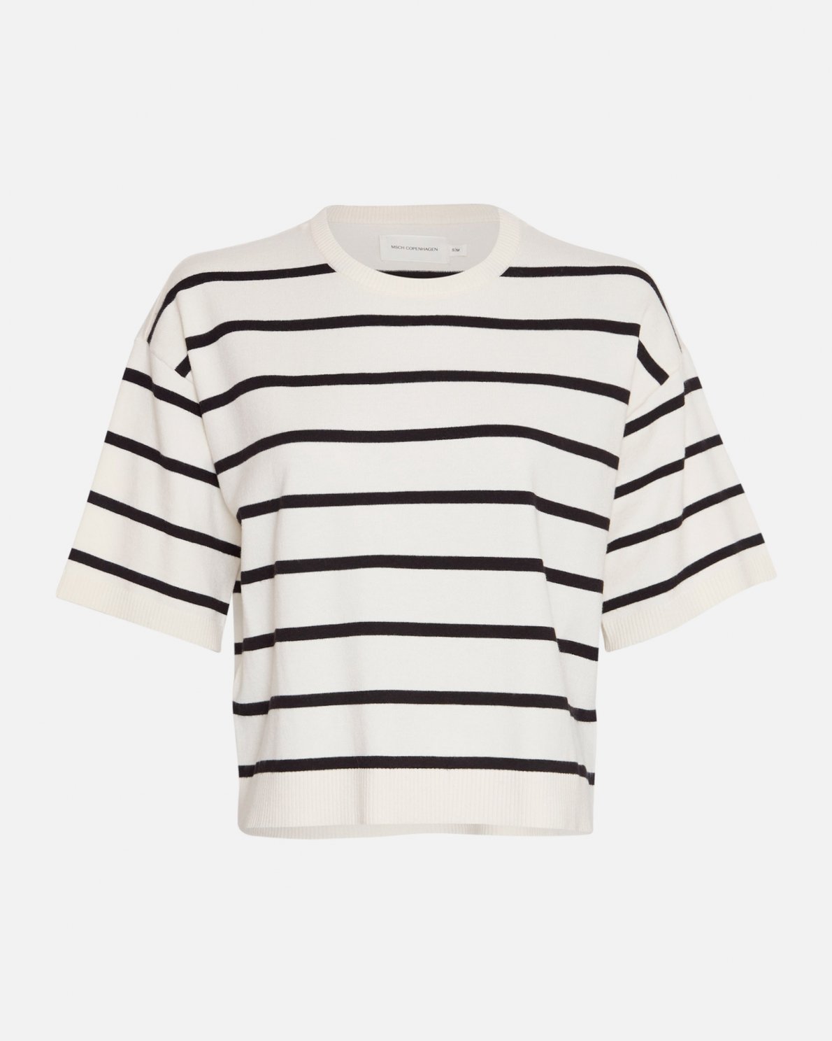 Light, short sleeve pullover with horizontal stripes in a soft material. It is a soft knit pullover, which can be an effortless edition to any outfit, and a strong foundation for a versatile wardrobe, as it can be styled in many ways. Combine with your go-to jeans, an easy-breezy summer skirt or elegant pants, it can make an effortlessly chic outfit in no seconds.