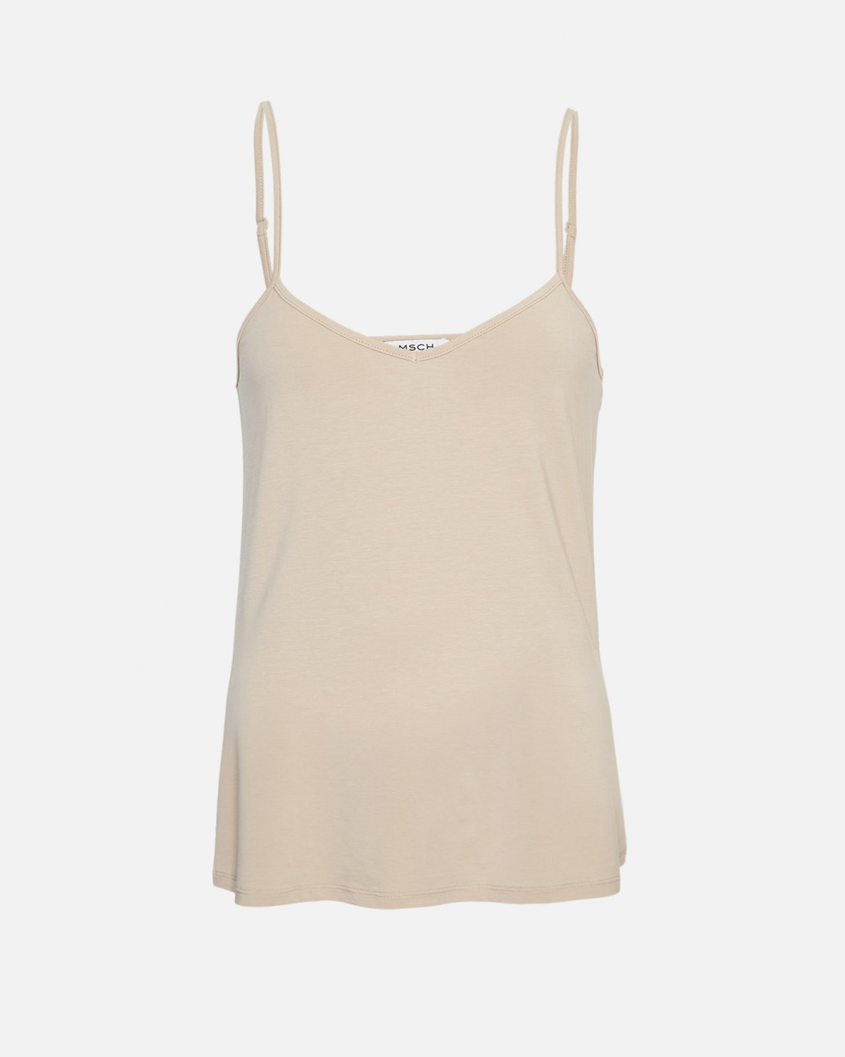 Manchmal braucht man einfach ein schlichtes Top unter der Bluse oder etwas Leichtes und Transparentes. Unsere brandneue Basic-Kollektion bietet Ihnen genau das: ein Trägerkleid, dieses Trägertop und Shorts. Das Top hat eine schmale Passform, einen soften V-Ausschnitt und verstellbare Träger für die perfekte Passform.