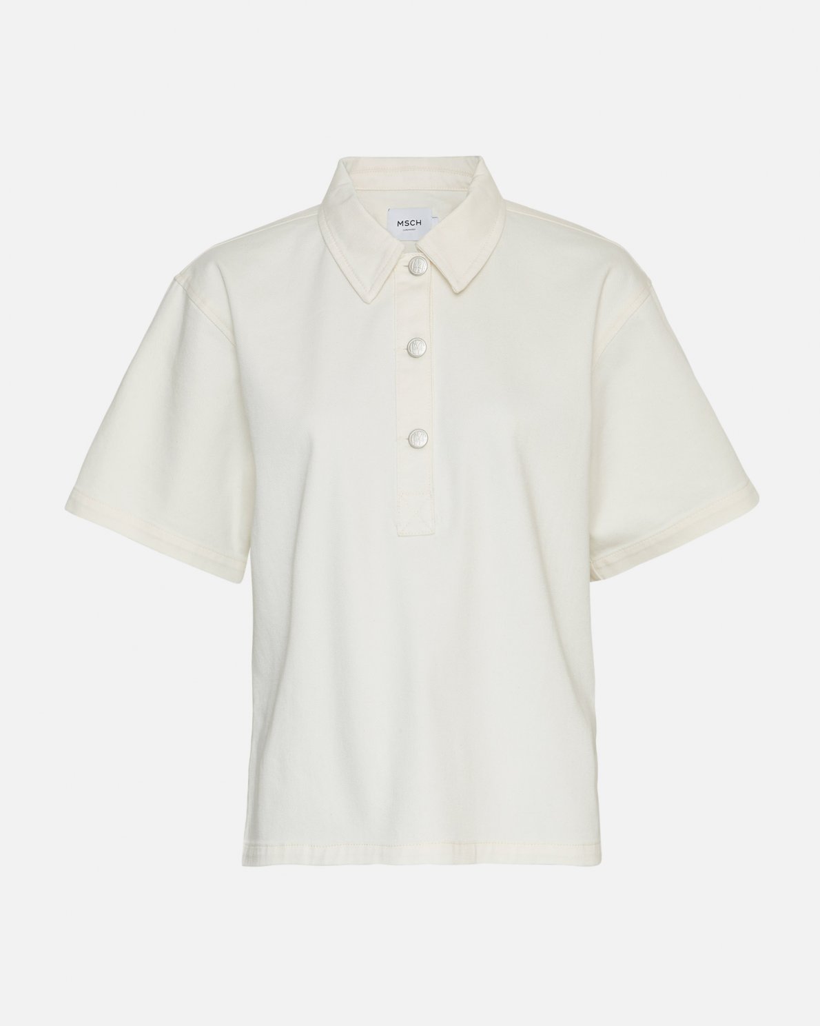 This trendy denim shirt features a short sleeved design, slightly dropped shoulders, shirt collar, 2/4 length sleeves and front buttons. Style it with either the matching denim pants, or a pair of relaxed fit pants.