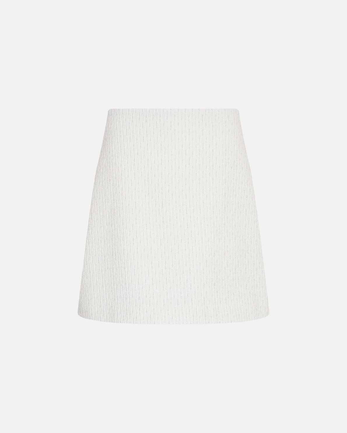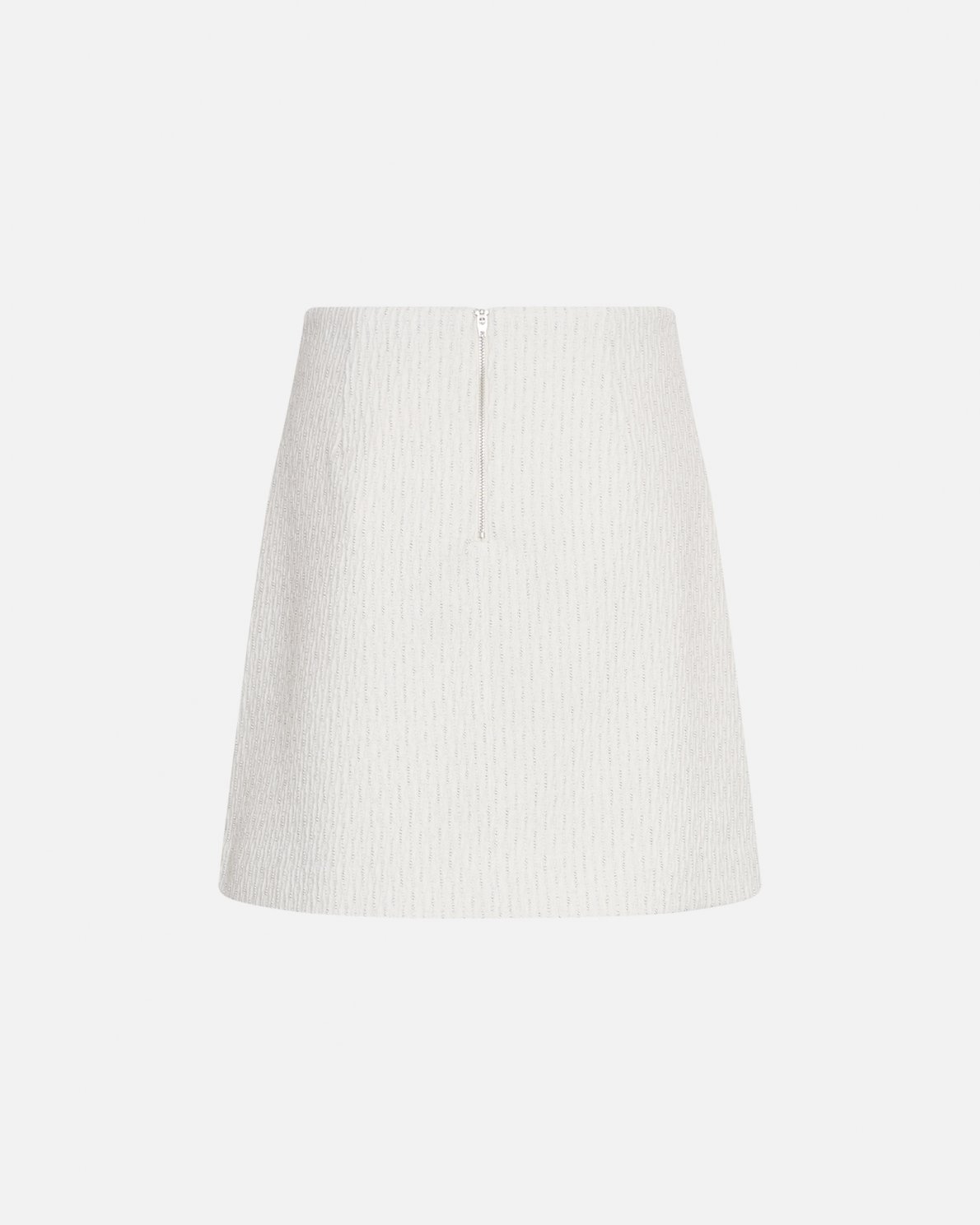 Nadialine is a new quilted quality, it's a full set of a mini skirt and a short jacket. The base of the colour is white with a touch of black/grey in the mix, the skirt features a high waisted fit and a zipper in the back. Style it either as a set or tone it down with a t-shirt and sneakers.