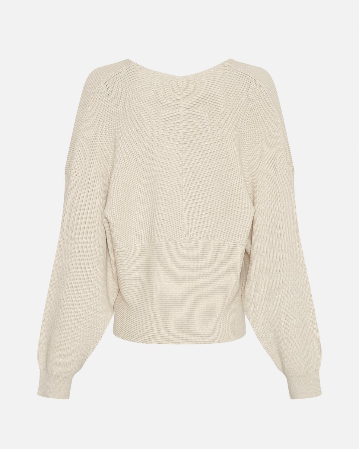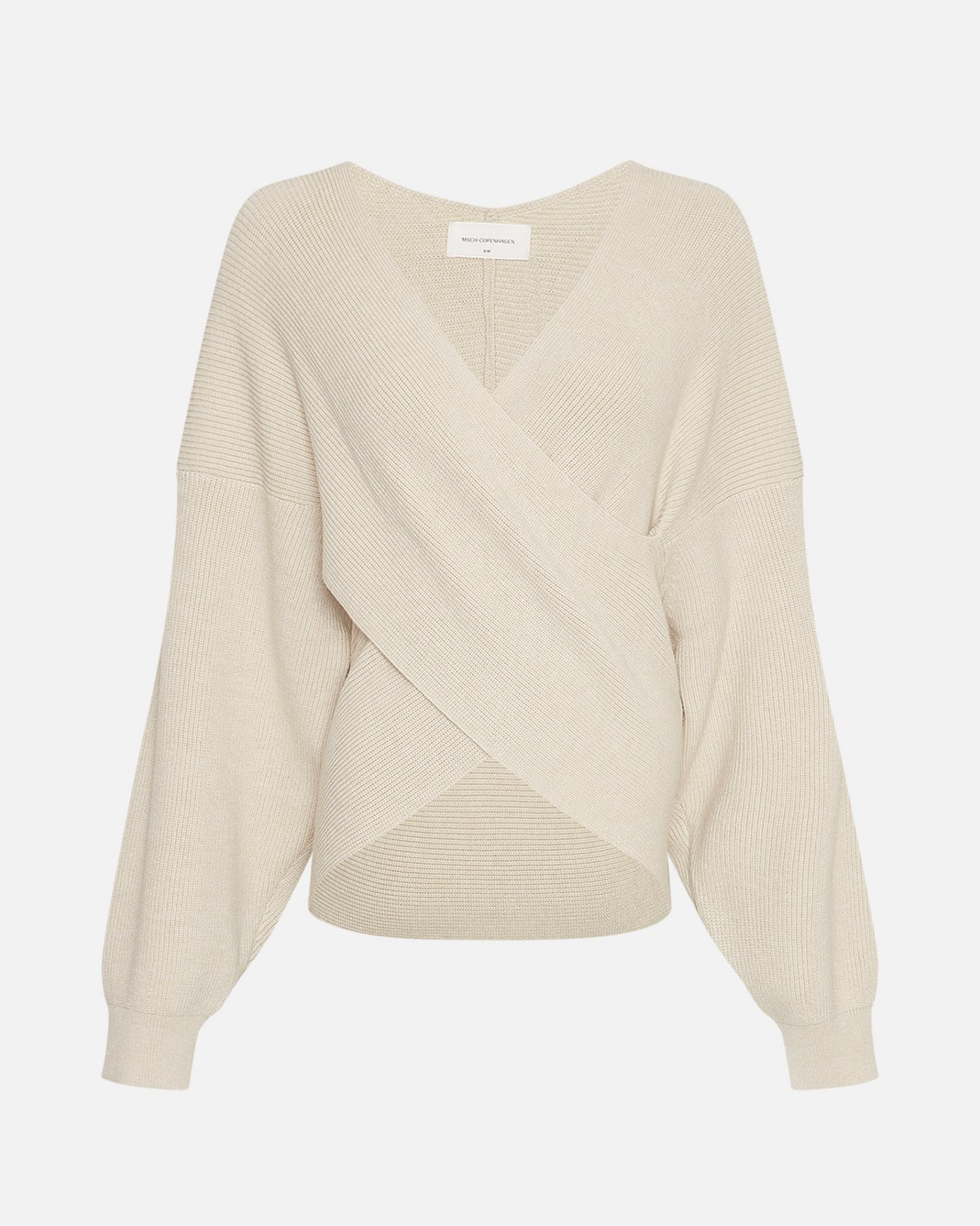 Wrap yourself in style with this chic pullover that offers a blend of timeless sophistication and modern flair. The half cardigan pattern adds a touch of intrigue to the classic knit design, creating an exquisite visual that sets you apart from the crowd. The wrap silhouette drapes gracefully, highlighting your figure and offering a flattering fit for all body types. It features dropped shoulders with a soft, cozy feel. This pullover is a highly versatile stye, seamlessly transitioning from day to night. Whether attending a cozy daytime gathering or a chic evening outing, this pullover exudes confidence and charm. Pair it with black washed jeans for a minimalistic look.