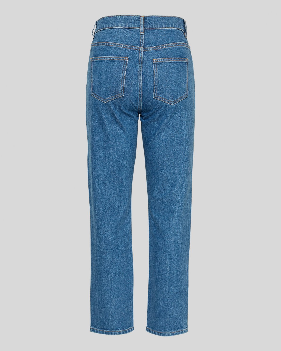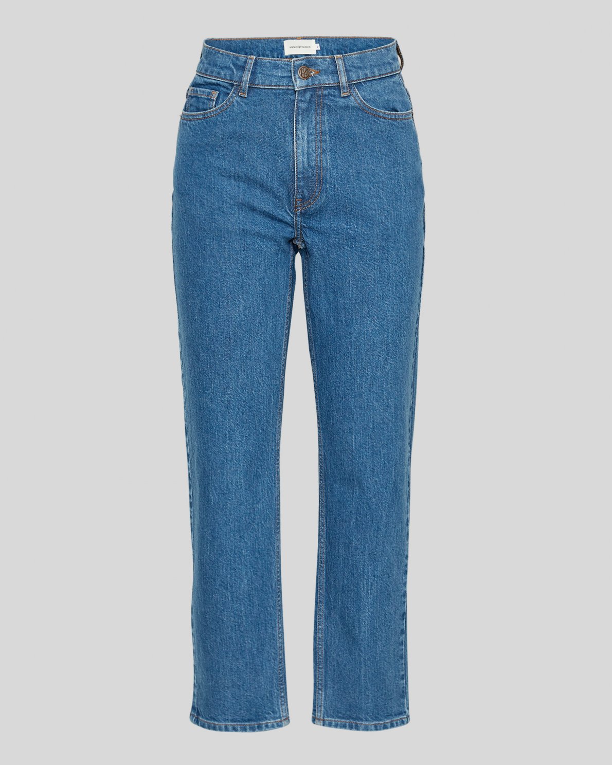 The Edi jeans, is a slim fit, ankle length jean, with a regular to high waist, made from a rich cotton material. The jeans have 1% elastane to enhance comfort. The jeans feature contrast stiching and several pockets, both at the front and on the back. The perfect basic jeans.