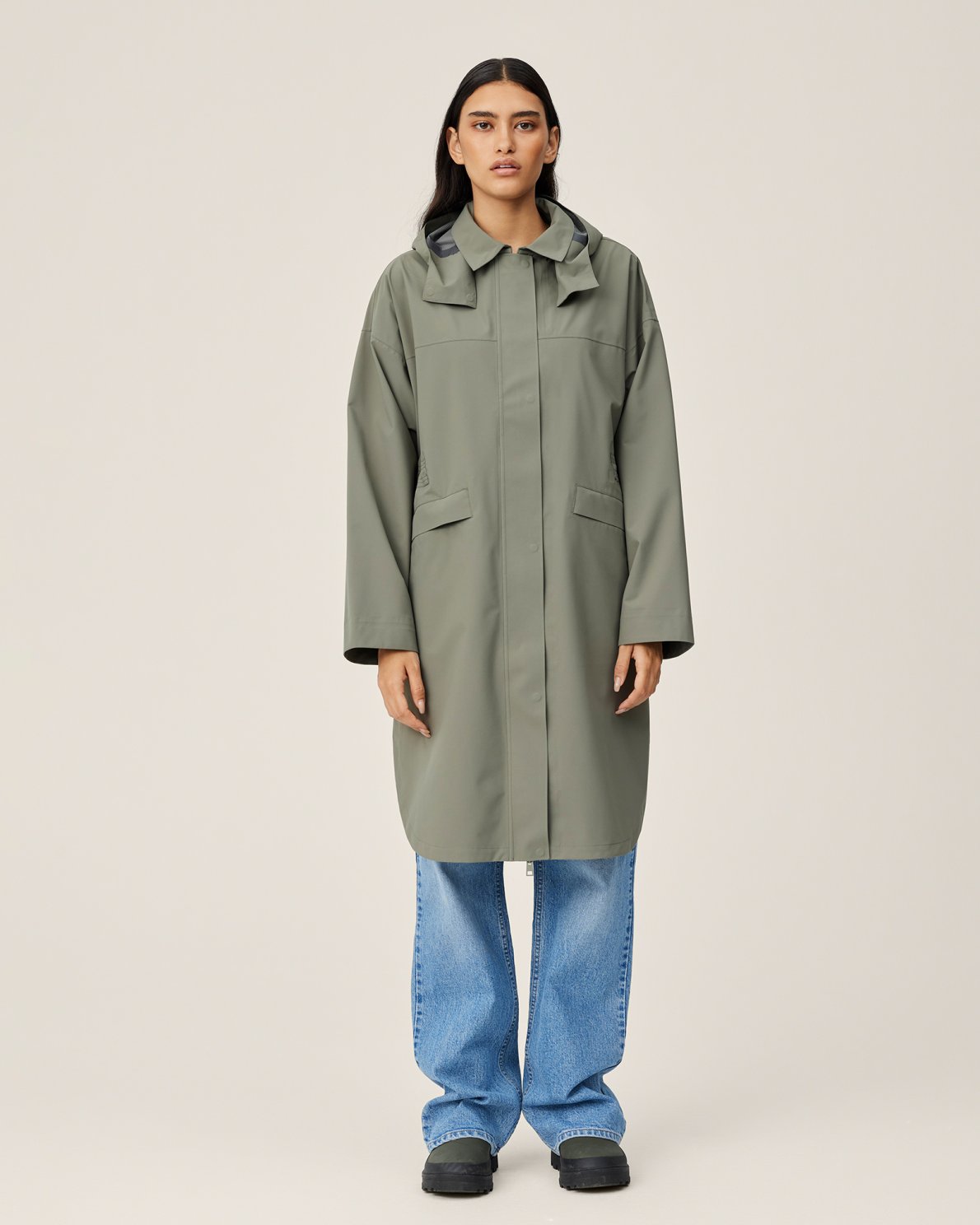 Practicality combined with stylish is how we'd describe our newest raincoat. With the capacity to windstand up to 8.000 mm of rain and has a 3.000g/m2/24hours breathability it's ideal for the changing danish weather. It features a large hood, longline design with slits in the side to ensure movement while biking and pockets at the front. You can adjust the back with an elastic.