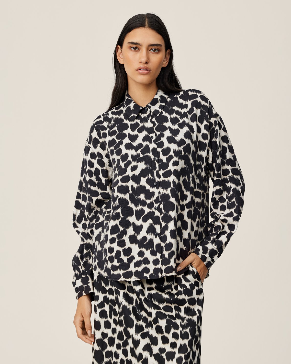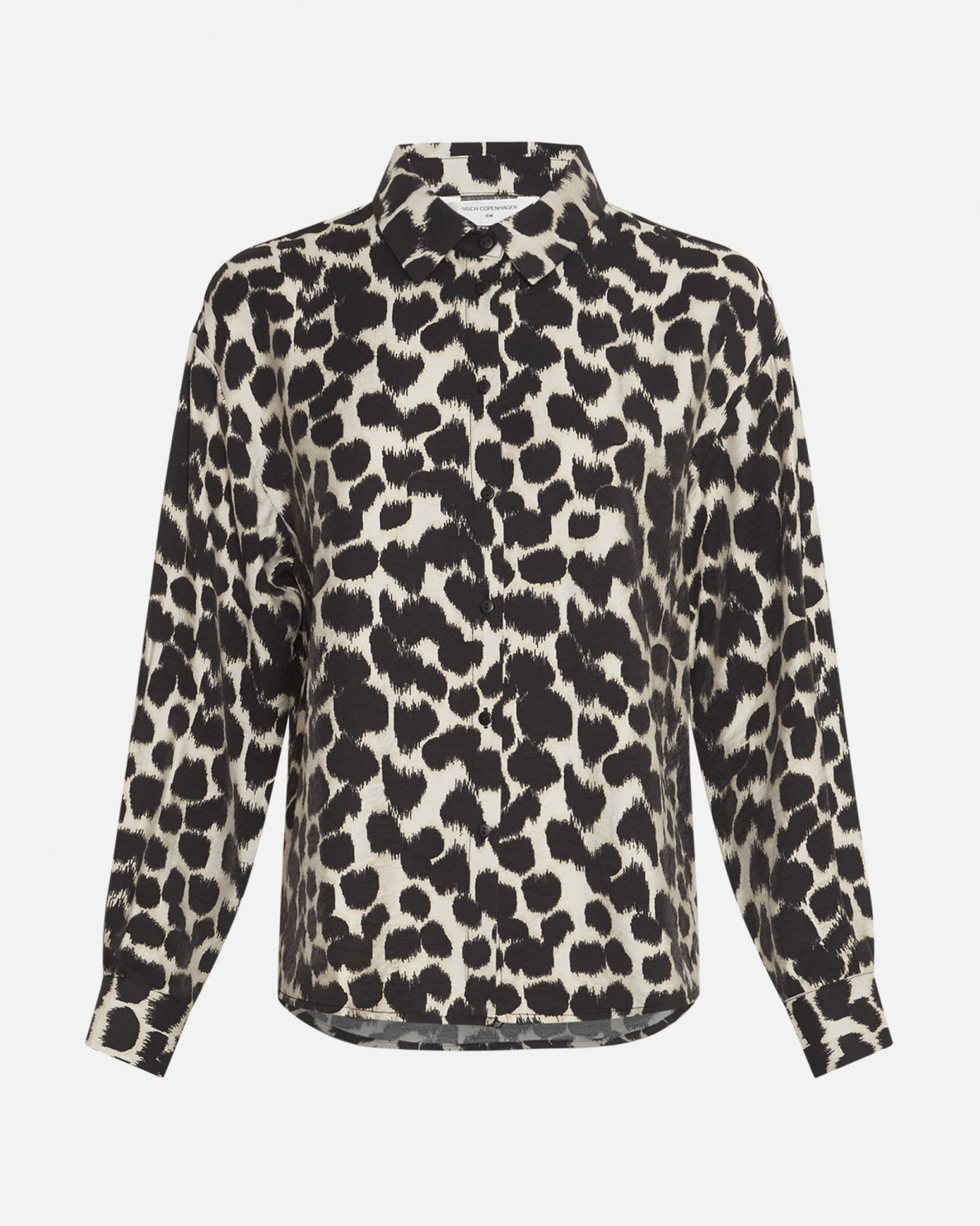 Ottelie is a beige and black leo printed material. This shirt is a MSCH classic with a soft and flowy quality. It features a classic collar and cuffs and has a full placket. Style it with the matching skirt and a eye catching belt for a modern outfit.