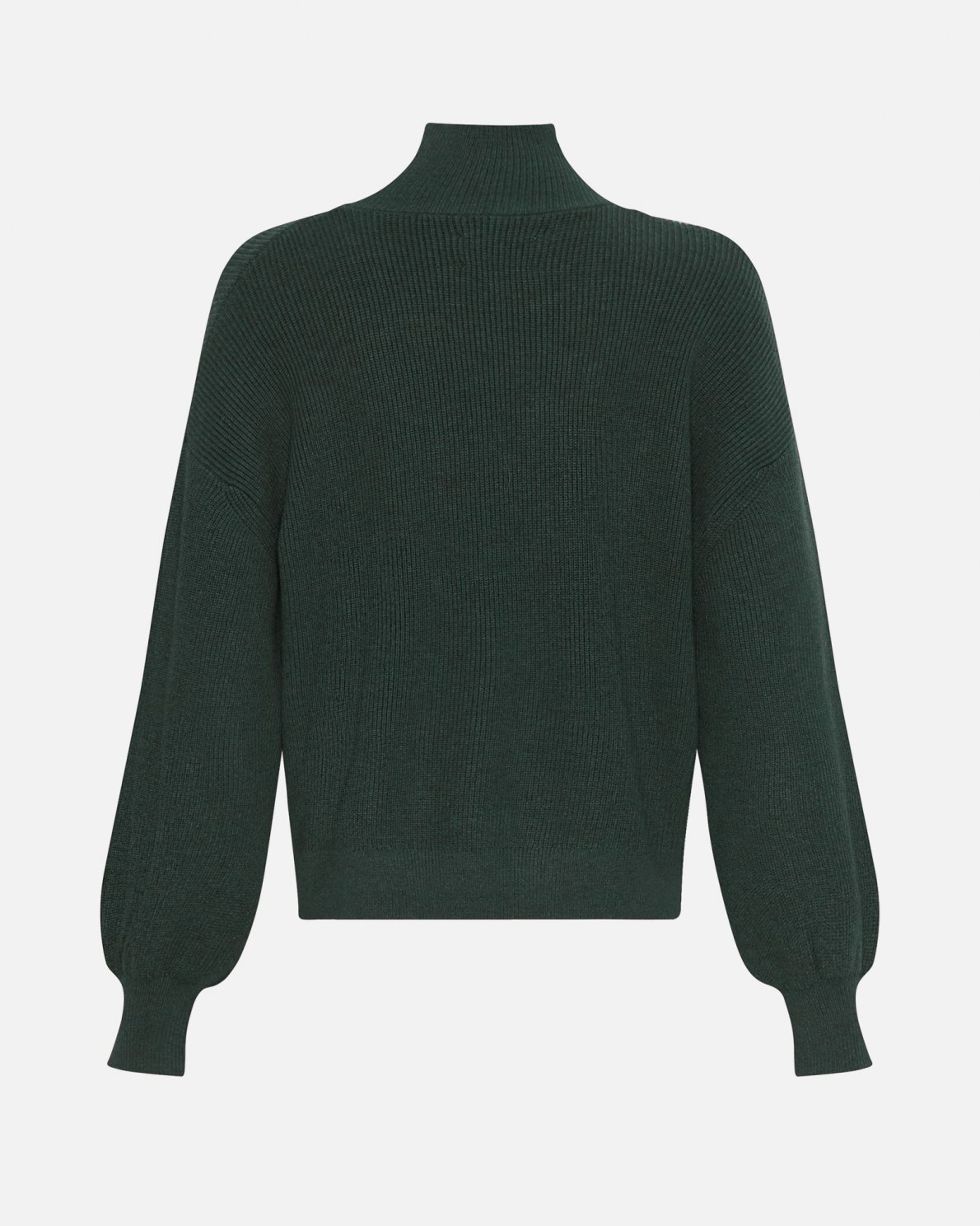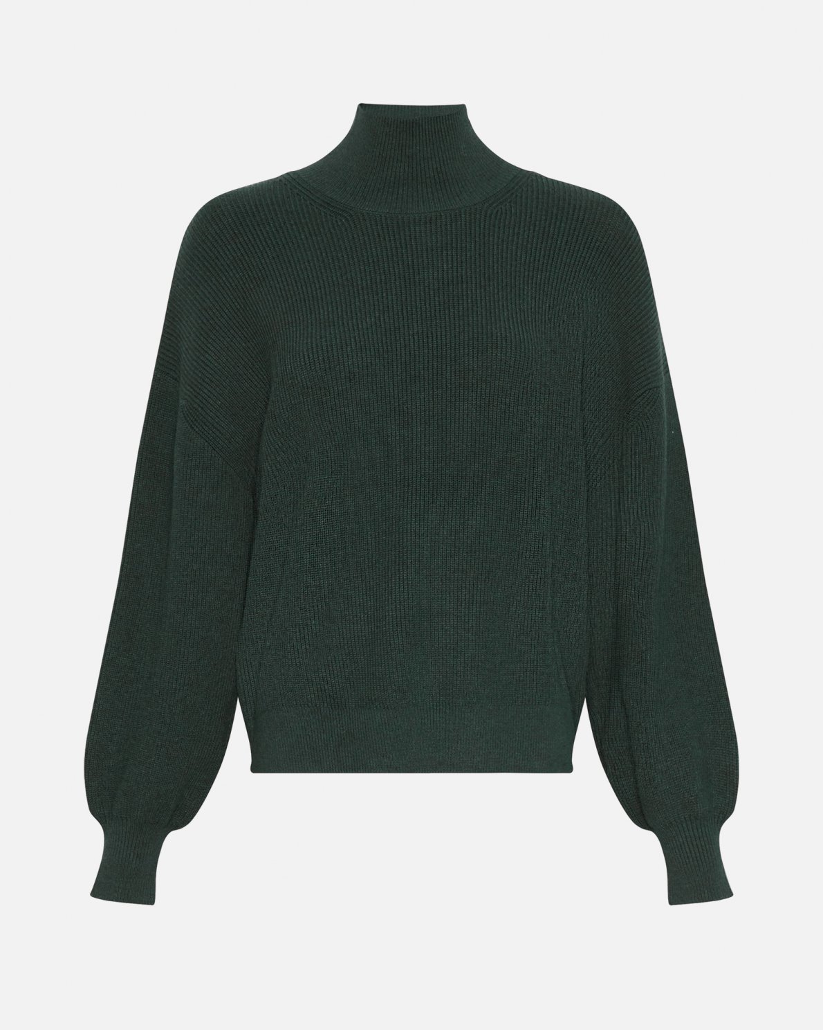 Magnea is the perfect rib pullover that comes with a very trendy oversized fit, giving you a bit of a boxy look, yet hugging your skin tight at the high rib cuffs. It features dropped shoulders with loose fitted sleeves and high neck. It is a perfect addition of a chic and casual outfit, paired with skinny jeans or a pair of statement high-waist jeans.