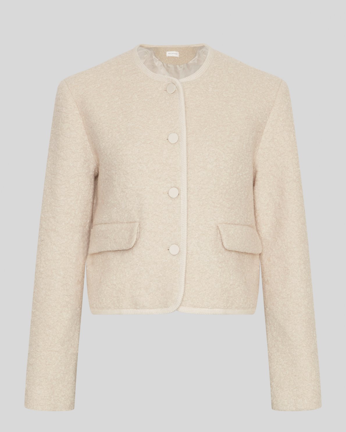 Introducing our exquisite Cailana short jacket: This jacket effortlessly combines style and comfort, making it a versatile addition to your wardrobe. The warm off-white birch color adds a touch of understated elegance, ensuring you stand out with refined charm. The Cailana short jacket features a tailored fit that flatters your silhouette, and making it wearable as both an indoor jacket just like a blazer or as a light outerwear jacket.