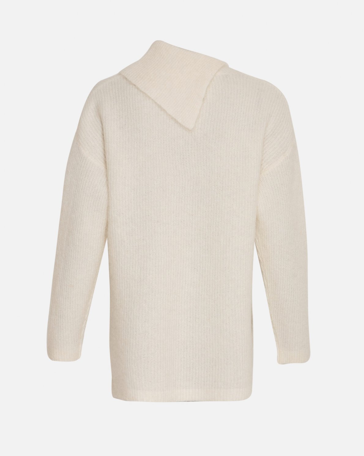 This pullover is a statement piece, it combines the classis longline pullover with a modern twist of the slant neck. It features dropped shoulders to enhance the oversized look. Style it with a cool pair of jeans to compliment the modern look of the pullover.
