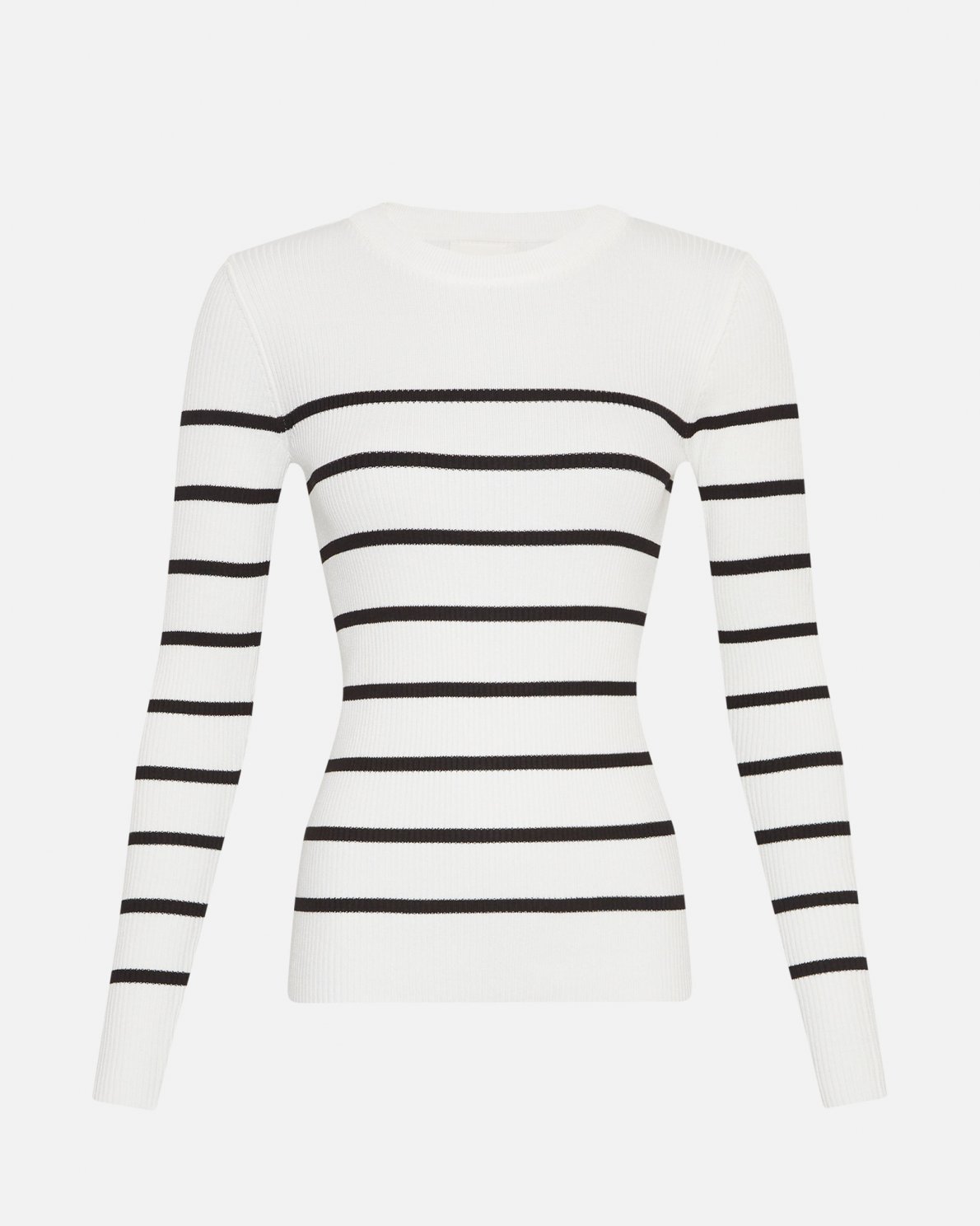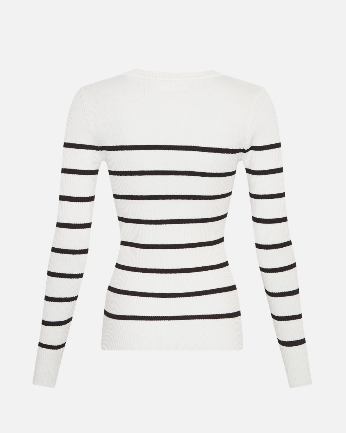 A classic, slim fit, ribbed pullover in a white colour as the base with black stripes. A piece of clothing you can wear for the next many season and which has endless possibilities for styling. The material is stretchy.