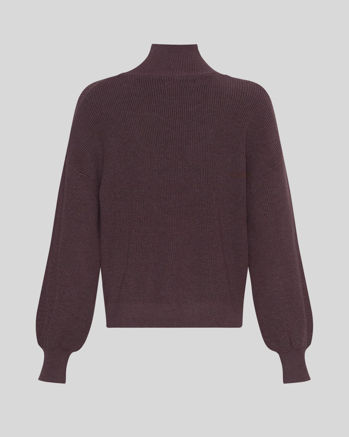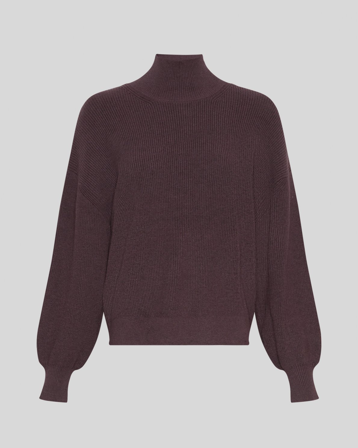 Magnea is the perfect rib pullover that comes with a very trendy oversized fit, giving you a bit of a boxy look, yet hugging your skin tight at the high rib cuffs. It features dropped shoulders with loose fitted sleeves and high neck. It is a perfect addition of a chic and casual outfit, paired with skinny jeans or a pair of statement high-waist jeans.