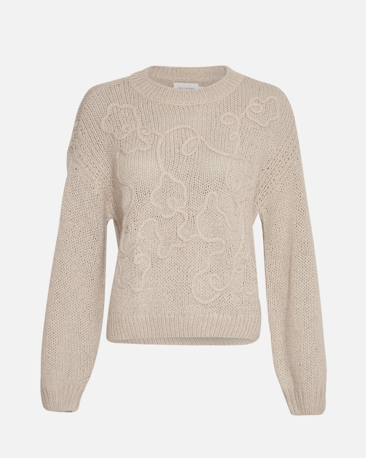 This pullover is a classic but with a twist. Our Diella Heidi pullover is decorated with a modern abstract pattern on the front. The pullover features a round neck, long loose sleeves and a slightly loose fit.