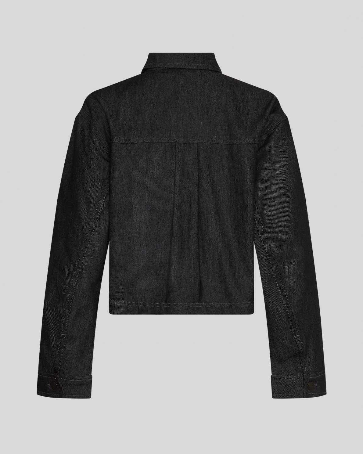 Elena is a soft denim quality, in a black washed colour. The jacket, has a cropped fit, making it perfect for the matching high waisted jeans or a dress, as it'll compliment your waist. The jacket features a shirt collar and two big, front pockets.