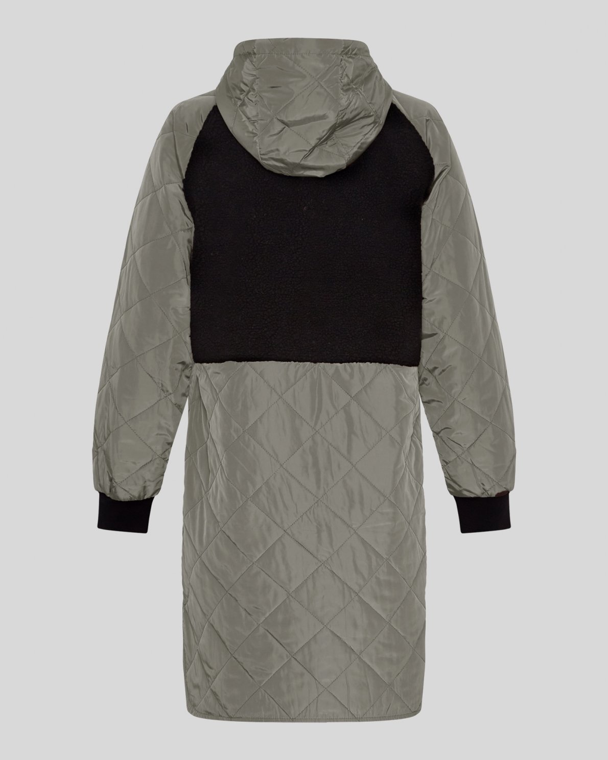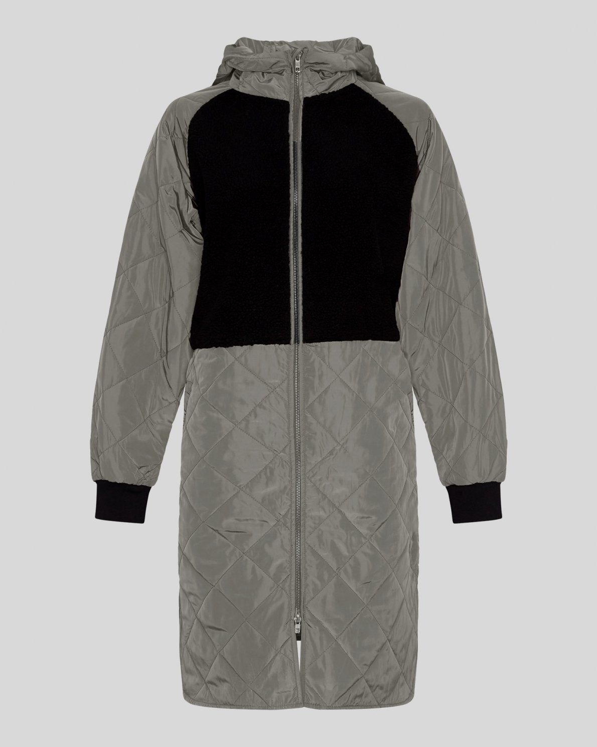Adelyna jacket is designed to keep you warm and cozy all season long with its trendy features combining practicality and modern design. The outer layer features a soft and plush teddy fabric, adding comfort and warmth. The quilted details of this jacket elevate the aesthetic appeal of this diamond-shaped stitching, creating a classic and refined look. Combining the quilted design with the teddy fabric makes a visually striking contrast, shaping a true statement outerwear. The relaxed fit allows for easy layering, whether wearing a sweater or a knitted cardigan underneath without compromising your individual style. The jacket also features a zipper detail on the front and a functional hoodie. Pair it with jeans, dresses, or skirts, this jacket will make a stylish statement wherever you go.