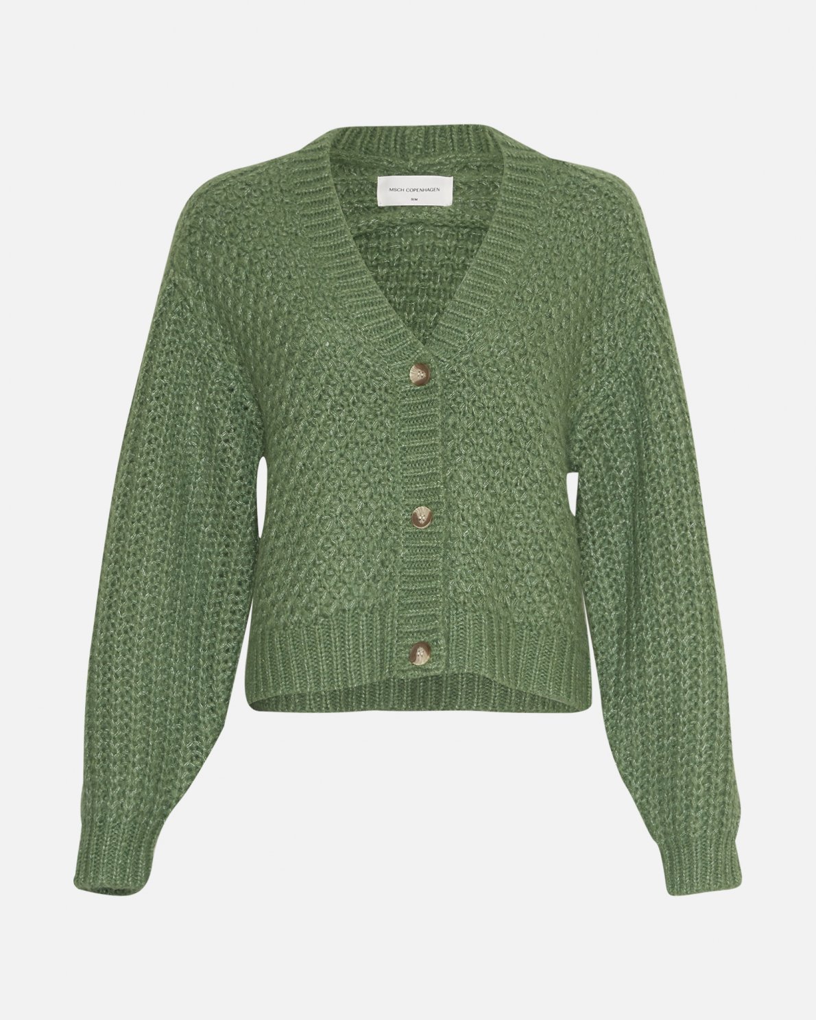 A timeless MSCH Copenhagen style. A cozy and chic knit cardigan to bring joy to the colder seasons. It features a V-neck, accentuating your neckline and voluminous sleeves, offering a casual look. The three buttons at the front bring a stylish appeal to this cardigan, allowing you to layer as you would like. Pair it with a pair of high-waist jeans or a body-hugging long skirt for a feminine look.
